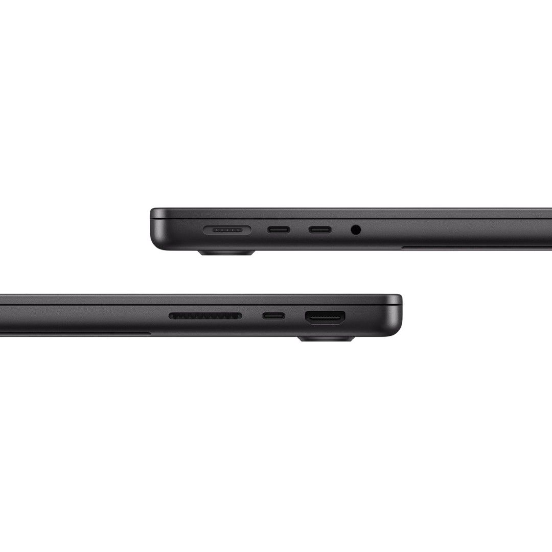 - Порты: Слот для карт SDXC, Порт HDMI, 3,5 мм разъем для наушников, Разъём питания MagSafe 3, Три порта Thunderbolt 4 (USB‑C) с поддержкой: зарядки, DisplayPort, Thunderbolt 4 (до 40 Гбит/с), USB 4 (до 40 Гбит/с)