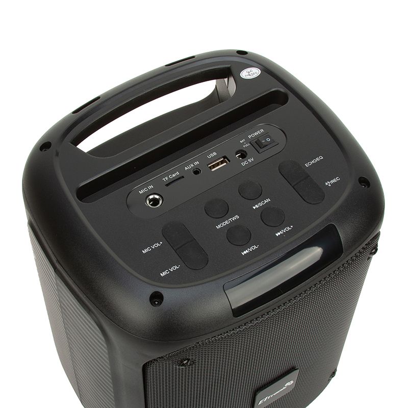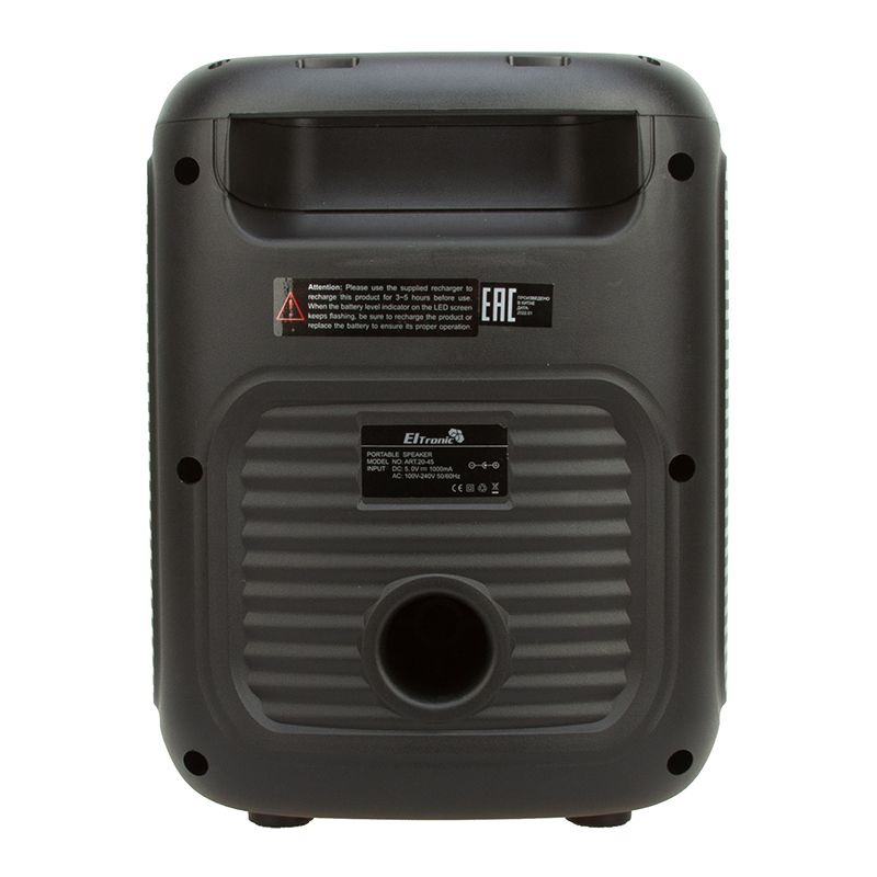 Мощность у переносной колонки с блютузом PMPO 150 Ватт, но ее вполне хватит, чтобы провести вечеринку в квартире, в небольшом кафе или на даче. Тем более, что вечеринка получится действительно сумасшедшая. Бренд ELTRONIC отличается яркой, насыщенной подсветкой на передней панели колонки. Она потрясающе смотрится в темноте и создает необыкновенную атмосферу.