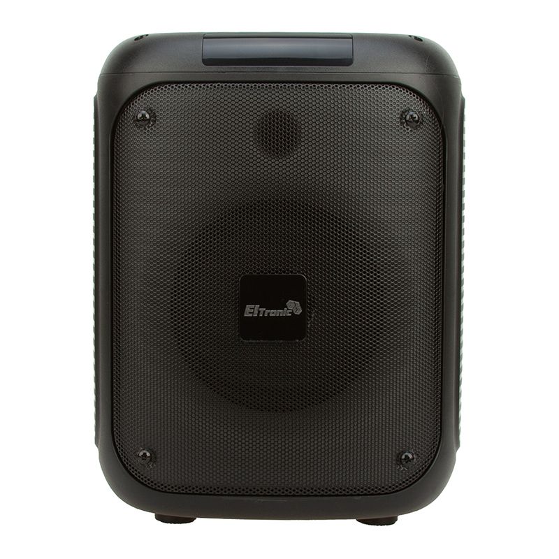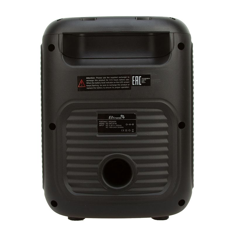 ELTRONIC 20-46 CRAZY BOX 150 обладает одним динамиком диаметром 5,25 дюймов, а также твитером, расположенным в верхней части колонки и отвечающим за воспроизведение высоких частот. Чтобы их лучше было слышно, нужно поставить переносную колонку с флешкой на стол или на высокую полочку. Если же вы мечтаете об объемном звучании, то рекомендуем приобрести еще одну колонку ELTRONIC 20-46 CRAZY BOX 150 и через функцию TWS соединить их в стерео пару.