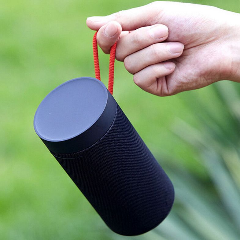 Bluetooth-колонка Xiaomi Mi Outdoor Speaker покрыта бесшовной тканью и мягким резиновым материалом, которые создают ее современный и солидный образ. По размеру ее корпус сравним с обычной бутылкой с водой, а наличие упругого шнурка открывает ещё больше возможностей для подвеса на сумке или в удобном месте.