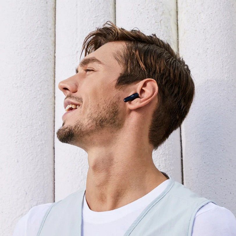 Наушники имеют эргономичную конструкцию с полувкладышем, чтобы обеспечить менее навязчивую посадку. Вы можете слушать часами без какого-либо дискомфорта. При весе всего 4,3 г каждый, наушники практически не ощущаются в ушах, позволяя вам полностью погрузиться в музыку.