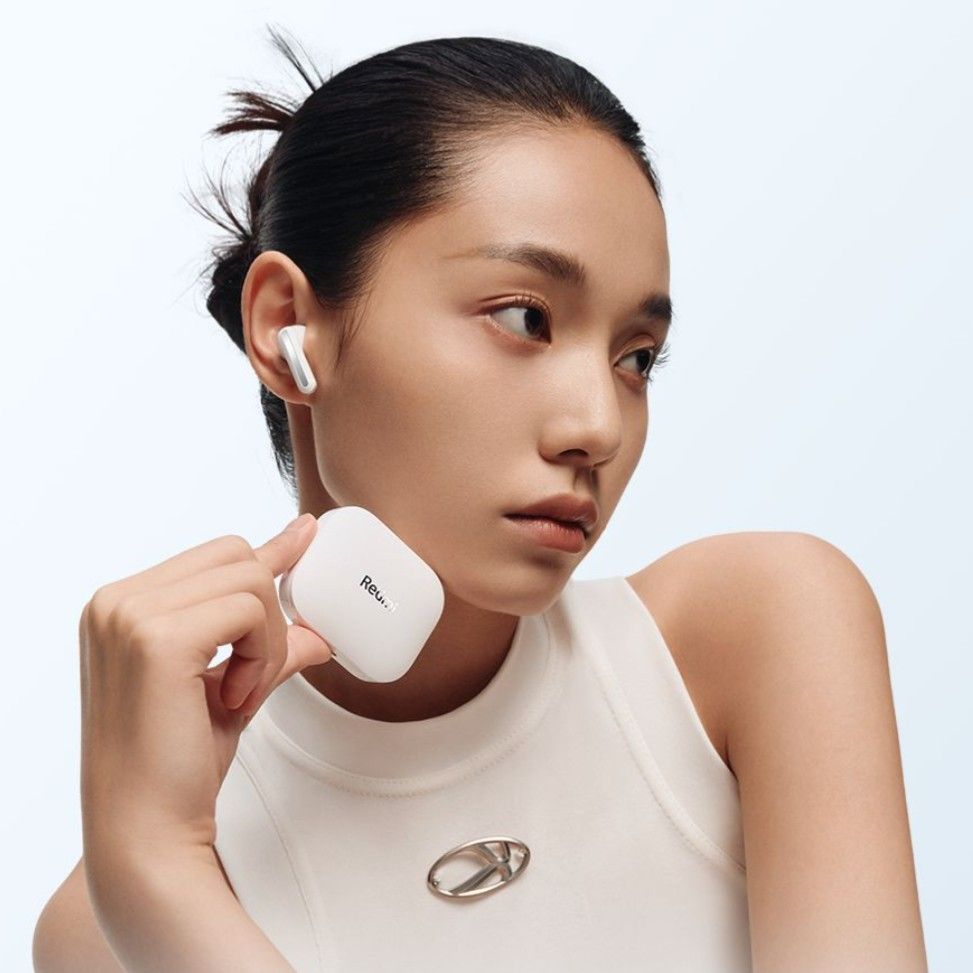Зарядный кейс сочетает глянцевую и матовую текстуры, а его лаконичный однотонный дизайн выглядит стильно и сдержанно. Полувкладыши весят всего 3.9 г*, обеспечивая комфорт даже при длительном ношении. Яркая декоративная полоска на ножке наушников добавляет изысканности и легкости образу.
