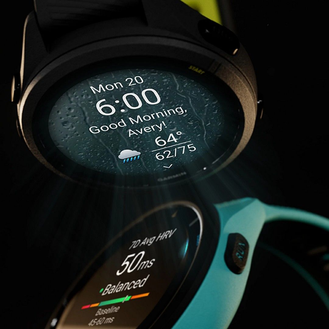 - Датчики: GPS, GLONASS, Galileo, QZSS, BeiDou, Оптический пульсометр Garmin Elevate (на запястье), Датчик уровня кислорода в крови Pulse Ox, Барометрический высотомер, Компас, Гироскоп, Акселерометр, Термометр, Датчик освещённости