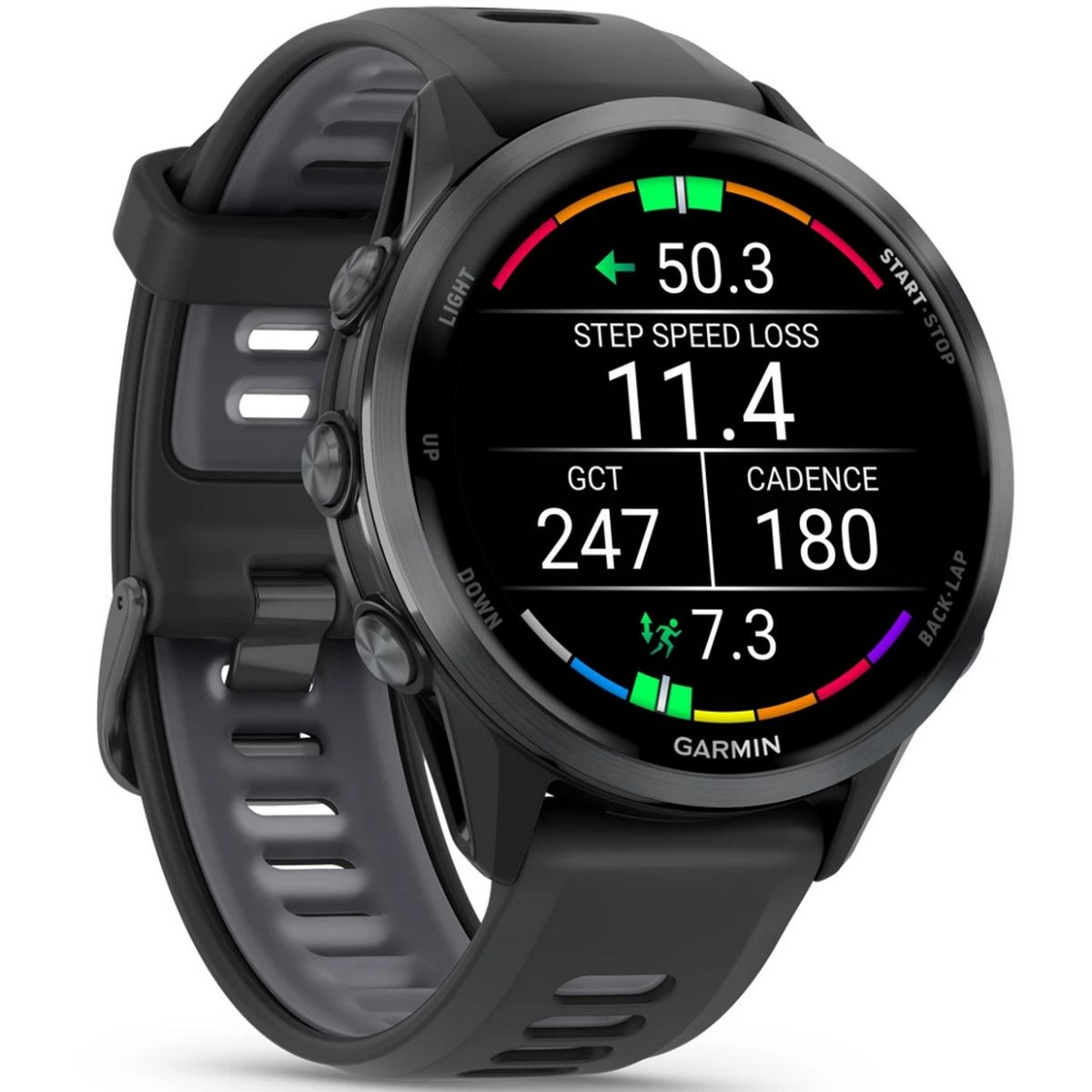 Отслеживайте общую энергоэффективность во время пробежек, включая объем тренировок, длину шага и потерю скорости при приземлении. При сопряжении с пульсометром HRM 600 (продается отдельно) часы показывают, насколько эффективно вы используете энергию при беге.