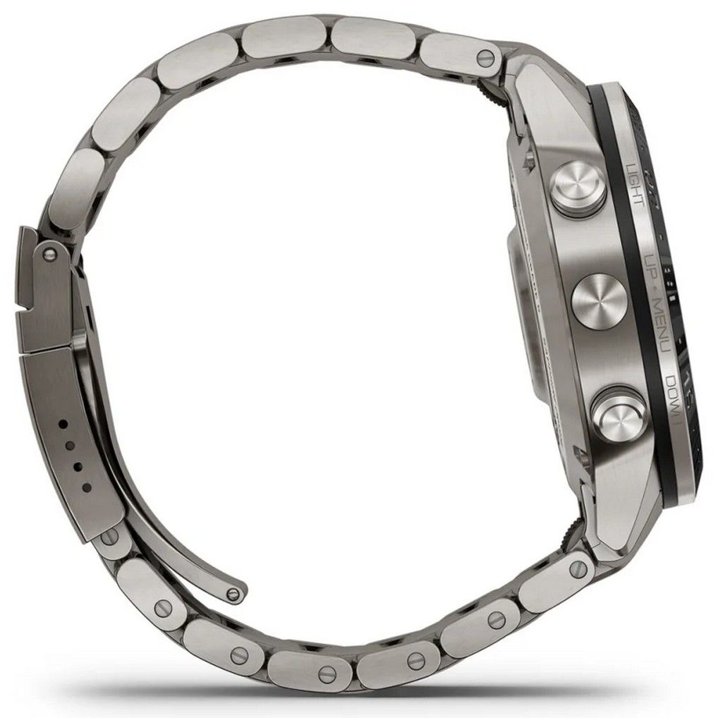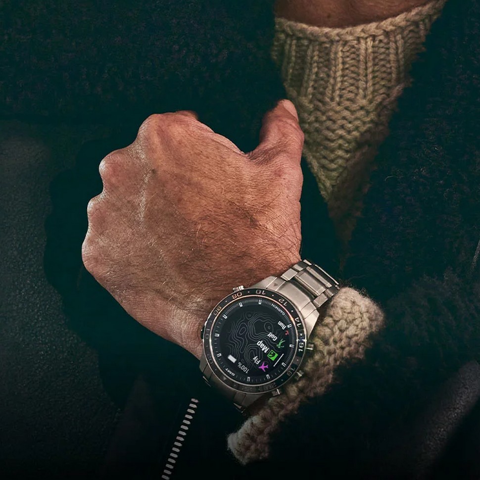 Это вне времени и правда. Эти специально созданные роскошные современные часы-инструмент оснащены закаленным браслетом из титана в форме стреловидного крыла, потрясающим сенсорным дисплеем AMOLED с традиционными кнопками управления и 46-миллиметровым корпусом из титана Grade-5 для сверхпрочной конструкции.