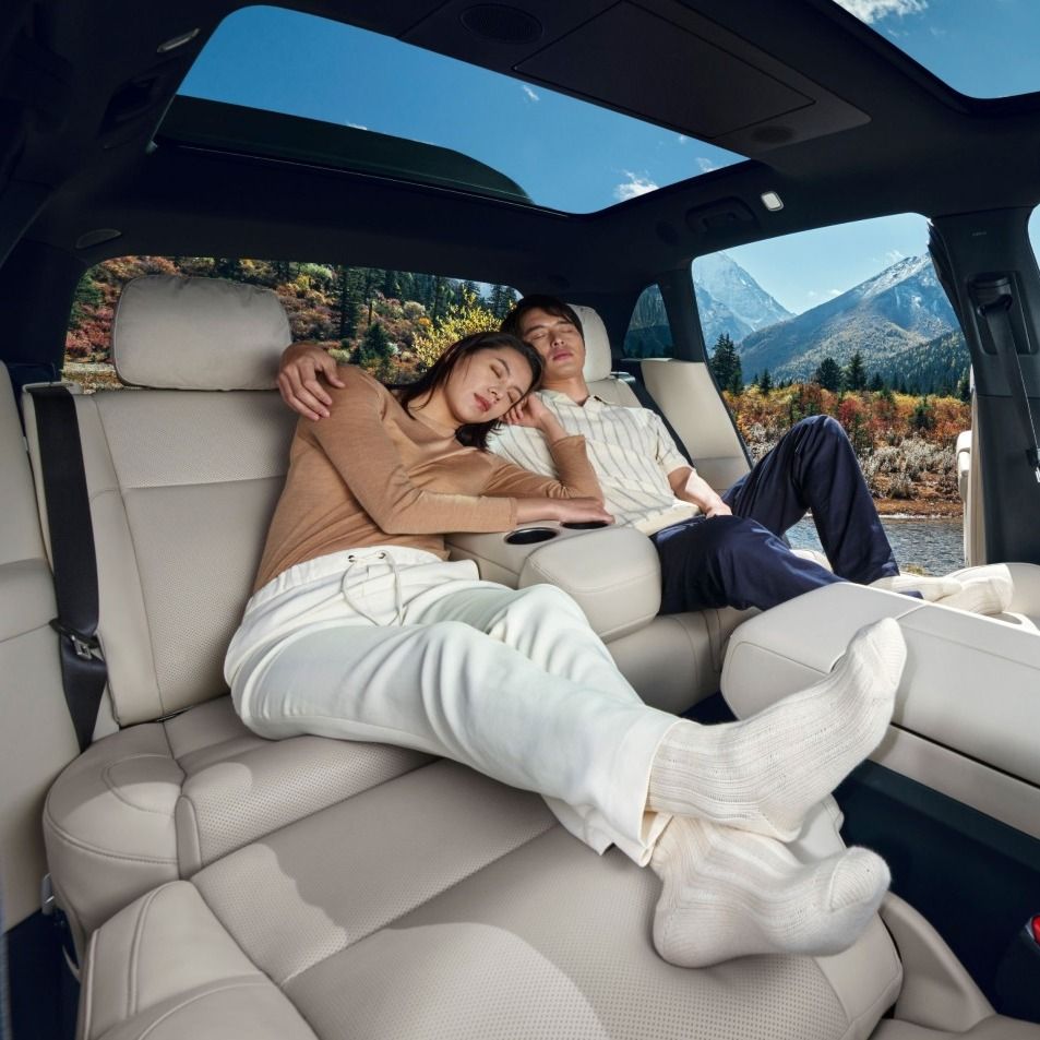 Две плоские «односпальные кровати» создаются путем складывания и соединения сидений первого ряда со вторым рядом, что делает их идеальными для уютного сна или кемпинга.