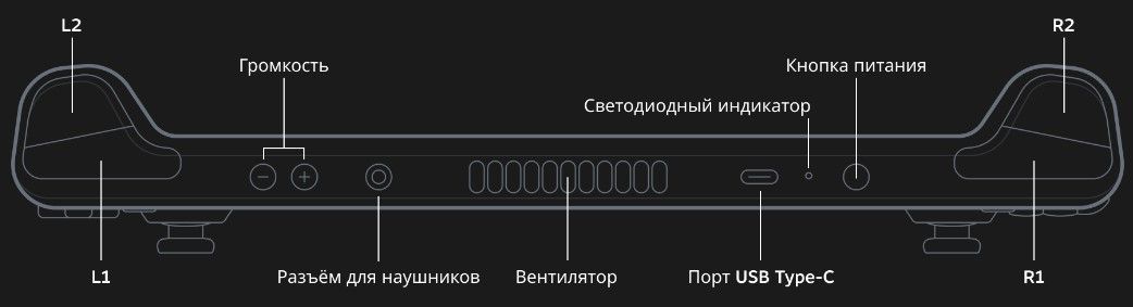 Внешнее подключение для контроллеров и экранов: USB-C с поддержкой альтернативного режима DisplayPort 1.4; до 8K при 60 Гц или 4K при 120 Гц, USB 3.2 Gen 2 - Операционная система: SteamOS 3.0 (основана на Arch Linux)