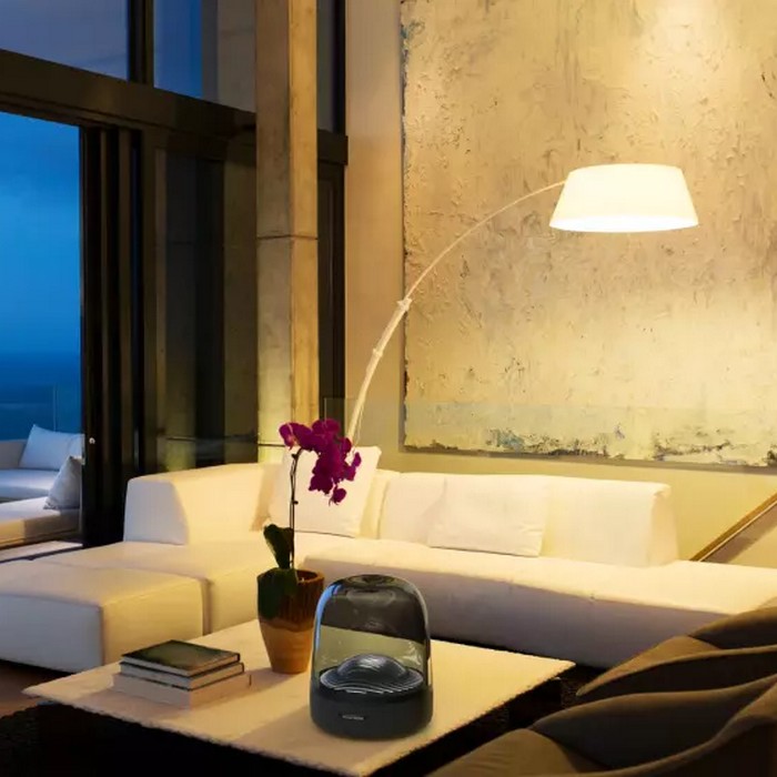 Разместите Harman Kardon Aura Studio 3 в любом месте вашего дома. Его элегантная форма и минимальная занимаемая площадь идеально подходят, создавая потрясающую деталь, которая прекрасно впишется в ваш интерьер.