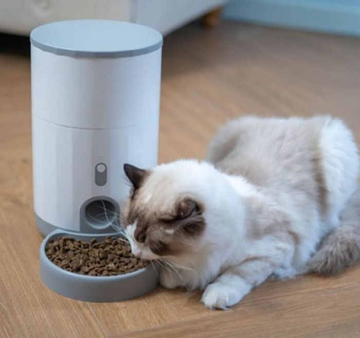 Если вы дома, то тоже можете покормить пушистого члена семьи – для этого предусмотрена специальная кнопка на корпусе, активирующая ручную подачу корма.