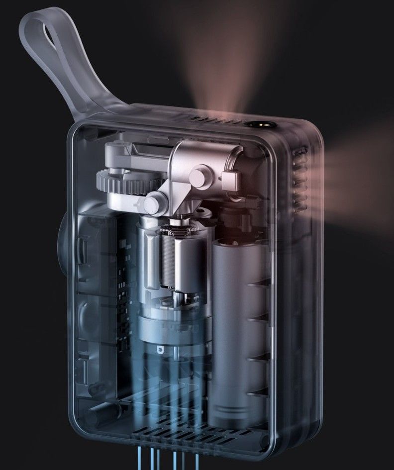 Компрессор использует большой шланг диаметром 19 мм и мощный магнитный двигатель для быстрого надувания. Полная зарядка позволяет зарядить 2,8 автомобильные шины. Компрессор оснащен встроенным аккумулятором большой емкости 2500 мАч.