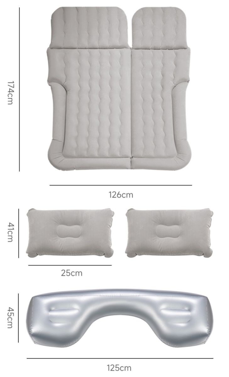 - Комплектация: Надувной матрас, 2 подушки, надувные колонны для подъема, насос, сумка для хранения
