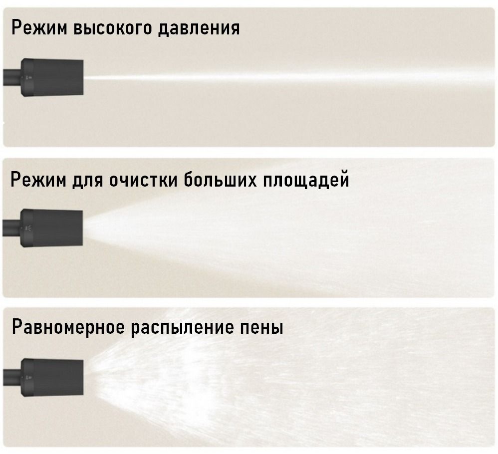 Оснащенная многофункциональной насадкой «три в одном», типы напоров воды под разными углами могут легко удовлетворить потребности в различных сценариях. Вы можете напрямую вращать насадку для переключения режимов по своему желанию, что значительно повышает эффективность очистки.