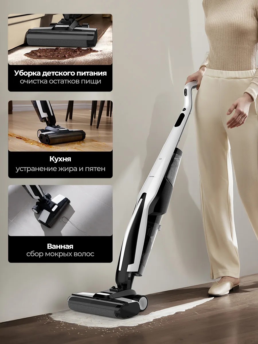 Уникальная особенность Deerma DEM-VX100 — встроенная система электролиза воды, которая преобразует обычную водопроводную воду в дезинфицирующий раствор. Это позволяет эффективно уничтожать бактерии и вирусы на поверхностях без использования агрессивных химических средств. Безопасная технология идеальна для домов с детьми, домашними животными и людьми, склонными к аллергии.