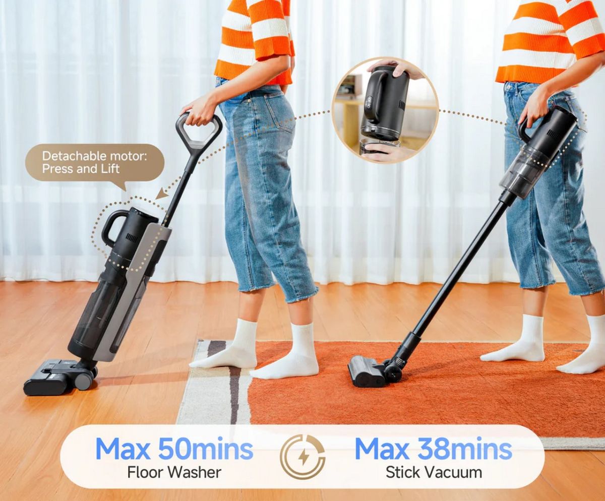 Пылесос и швабра в одном! Легко переключайтесь между мощным вертикальным пылесосом и глубокой мойкой пола — просто отсоедините мотор. Идеально подходит для твёрдых полов, ковров и ковриков, G10 Combo справляется как с влажными пролитиями, так и с сухой пылью и стойкими загрязнениями за один проход.