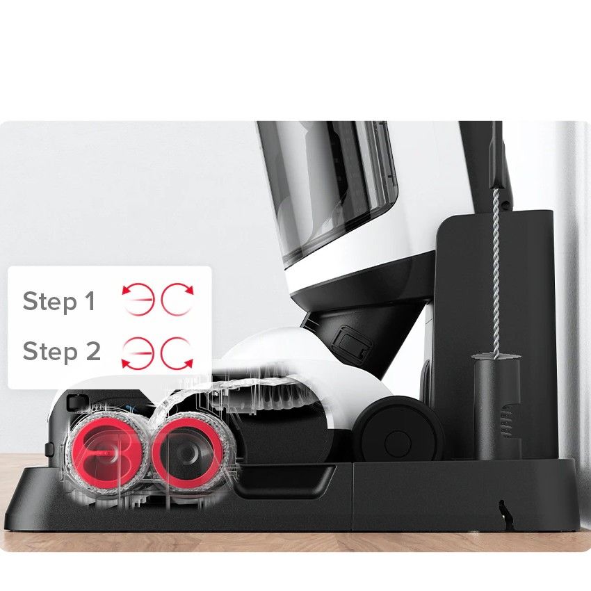 Комплектация: Roborock Dyad Pro, Станция для зарядки и самоочистки пылесоса, Съемная ручка, Адаптер питания, Запасной HEPA-фильтр, Ёршик для очистки пылесоса