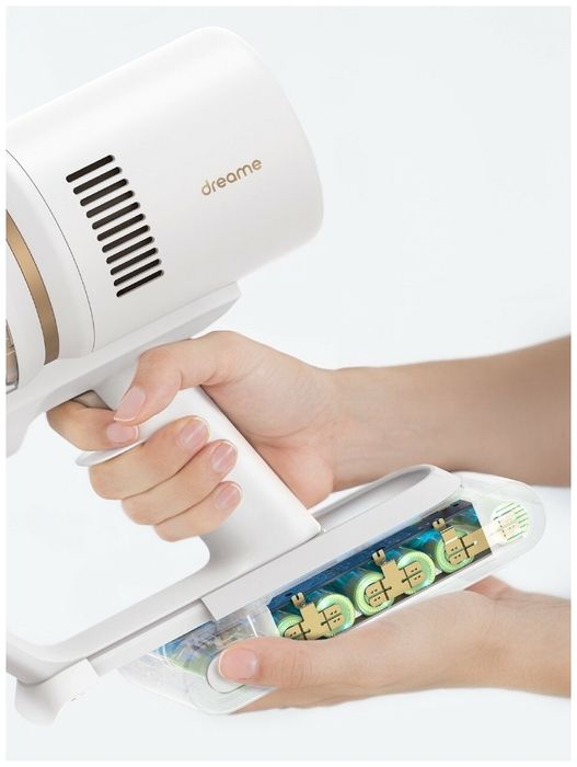 P10 Pro выполнен из пластика белого цвета, однако некоторые элементы корпуса отличаются по цвету. В дизайне Dreame P10 Pro используется золотистый оттенок.