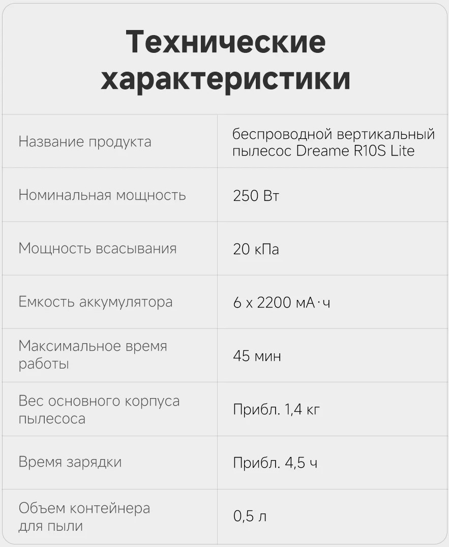 Беспроводной пылесос Dreame R10s Lite