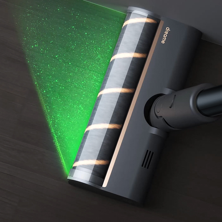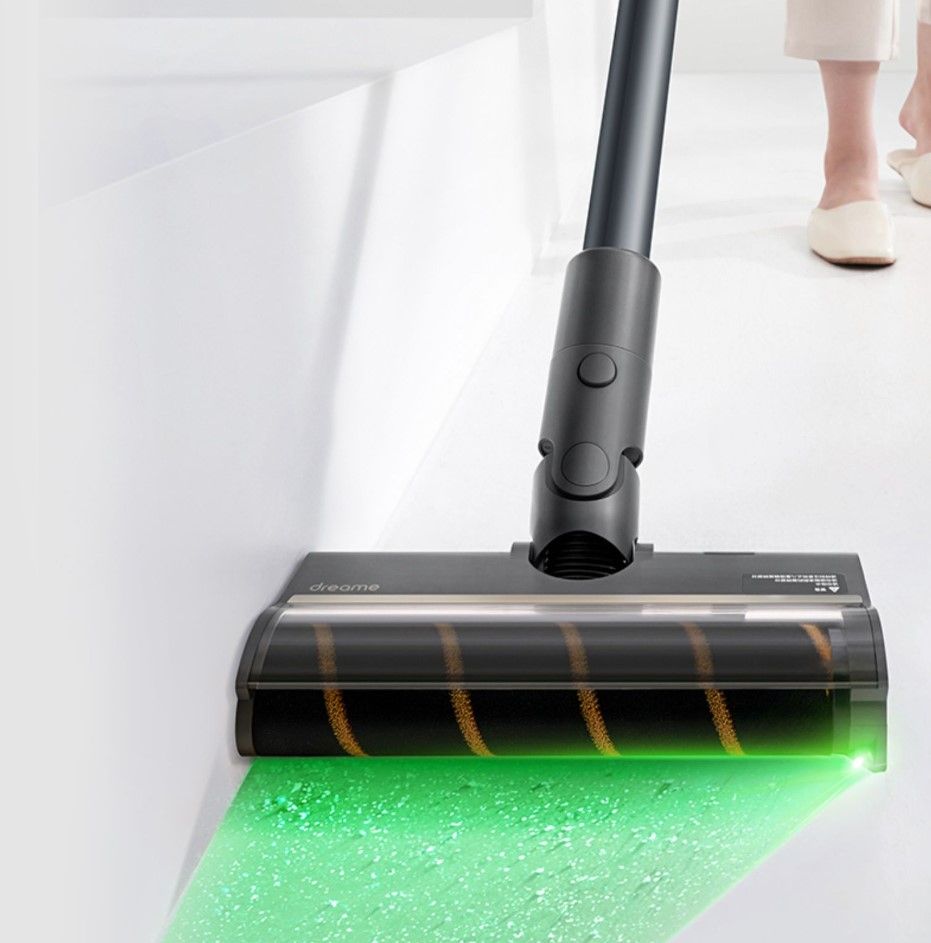 Dreame применяет в пылесосе технологию мягкого светодиодного зеленого света, чтобы увеличить видимый диапазон мелкой пыли и более тщательно пылесосить.