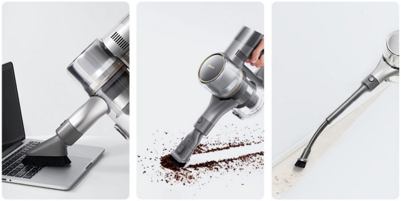 - Комплектация: пылесос, удлинитель, основная моторизированная щетка, щелевая насадка, настенное крепление, широкая щелевая насадка, антиклещевая моторизированная щетка, адаптер питания, мягкая щетка, сгибающийся адаптер