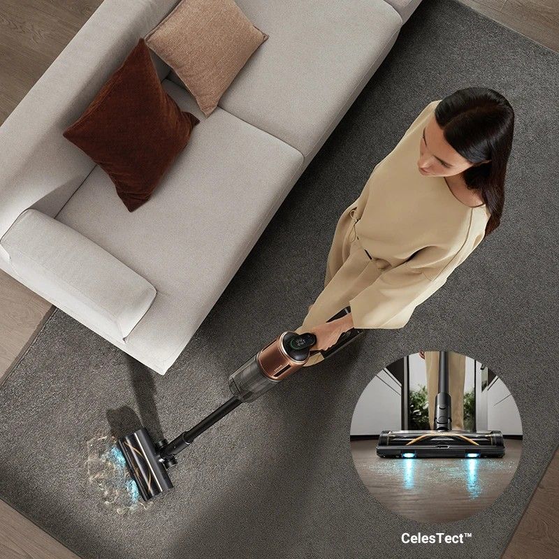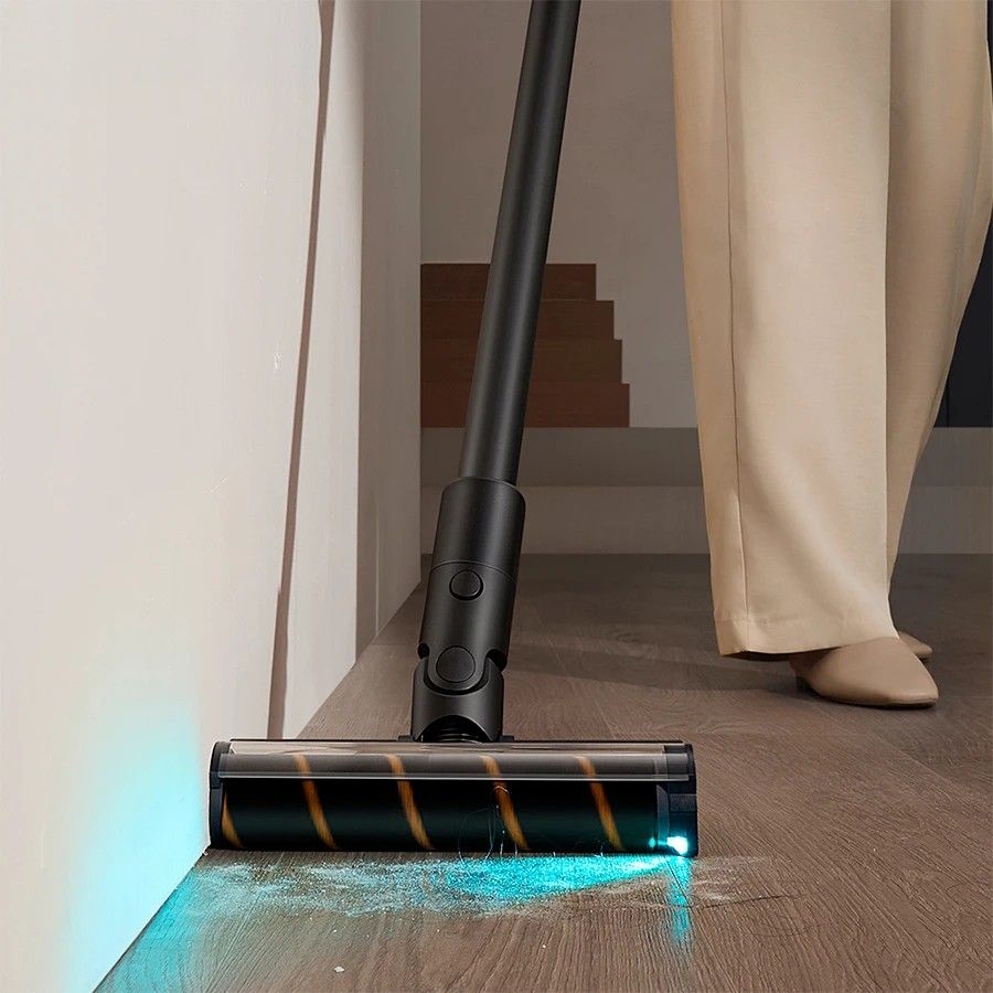 Мягкая роликовая щетка также оснащена подсветкой, которая помогает обнаружить скрытую пыль и эффективно очистить труднодоступные места. Теперь уборку можно выполнять на более близком от стены расстоянии (7 мм). Пылесос без проблем удаляет мусор по обеим сторонам, в том числе вдоль плинтусов.