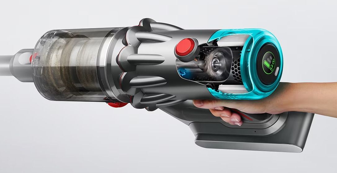 Двигатель Dyson Hyperdymium вращается со скоростью до 122 000 об/мин, обеспечивая мощное всасывание! При весе всего 2,2 кг.