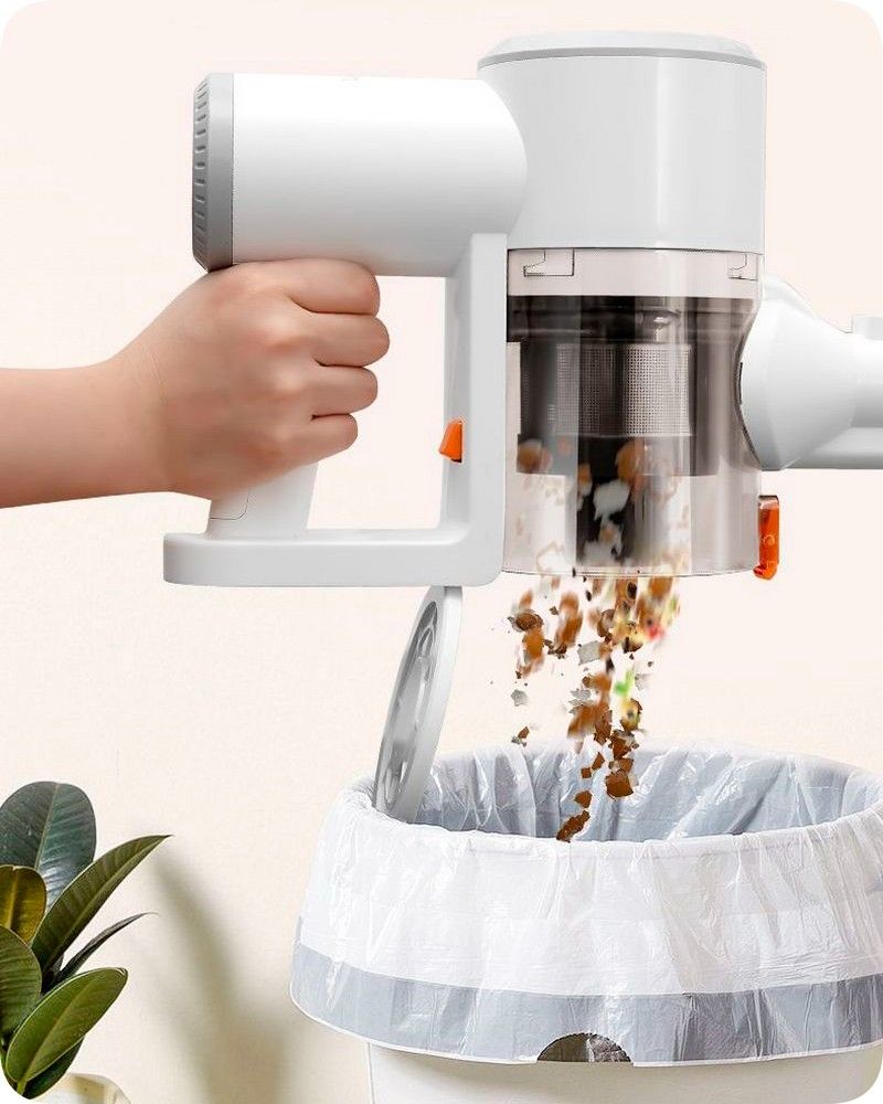 Большой пылесборник объемом 800 мл очищается одним нажатием кнопки. Чистые руки и быстрая очистка.