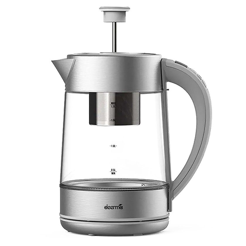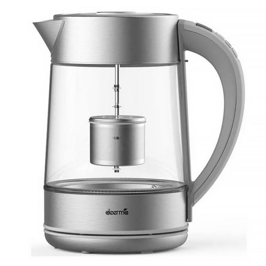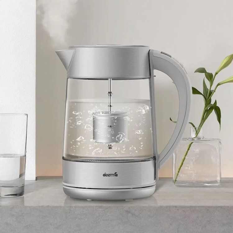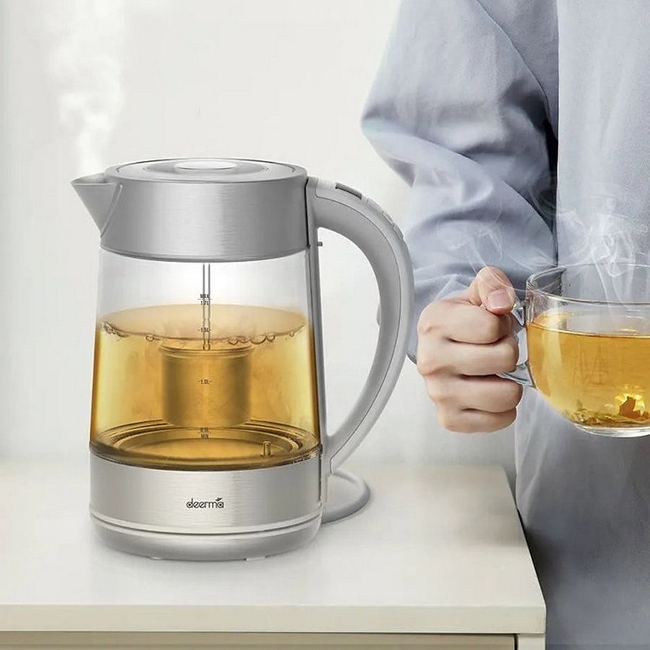 Электрический чайник Xiaomi Deerma DEM-SH50W оснащен специальным металлическим ситечком для заваривания чая. Благодаря этому можно быстро приготовить любимый напиток без дополнительных приспособлений. На ручке Deerma SH50W есть светодиодный дисплей, который отображает текущую температуру. Удобные кнопки, которые позволяют установить нужный режим и добавить необходимые параметры, также располагаются на ручке. Объем колбы составляет 1,7 литра.