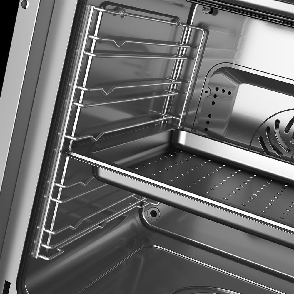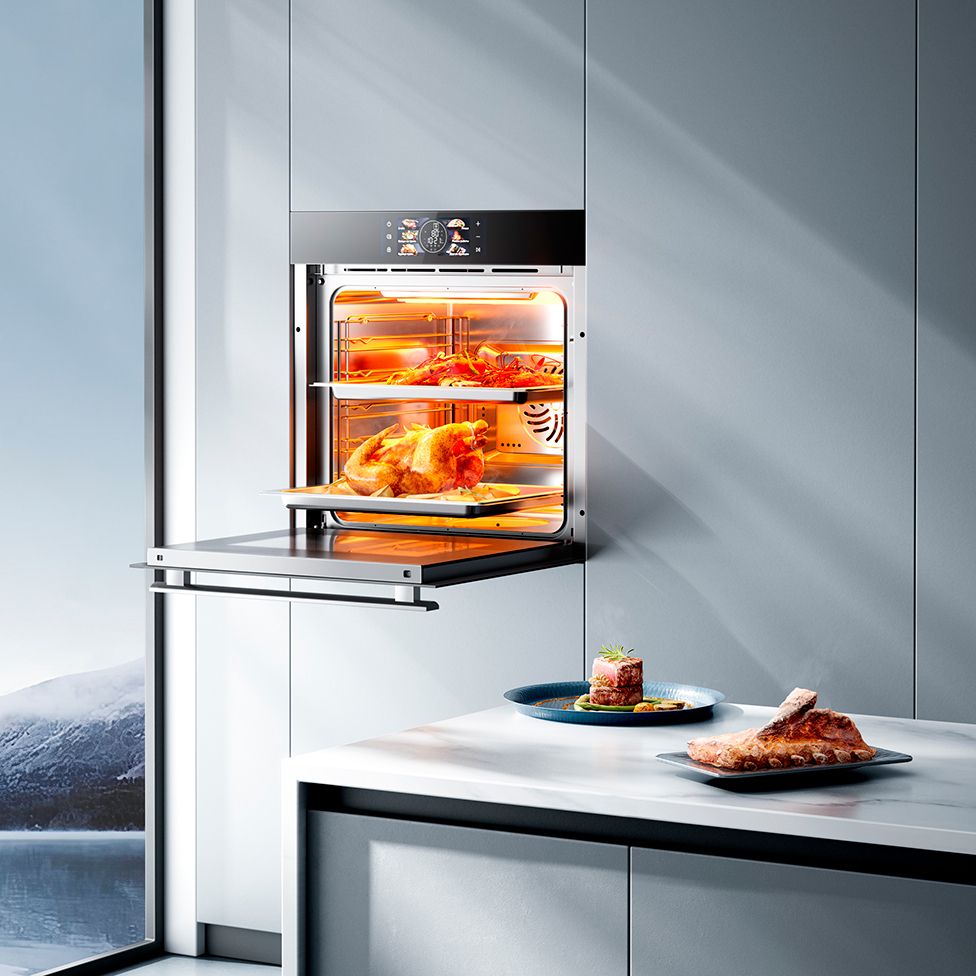 Благодаря грамотному распределению пространства и встроенному многоярусному грилю, можно одновременно приготовить большое количество блюд.