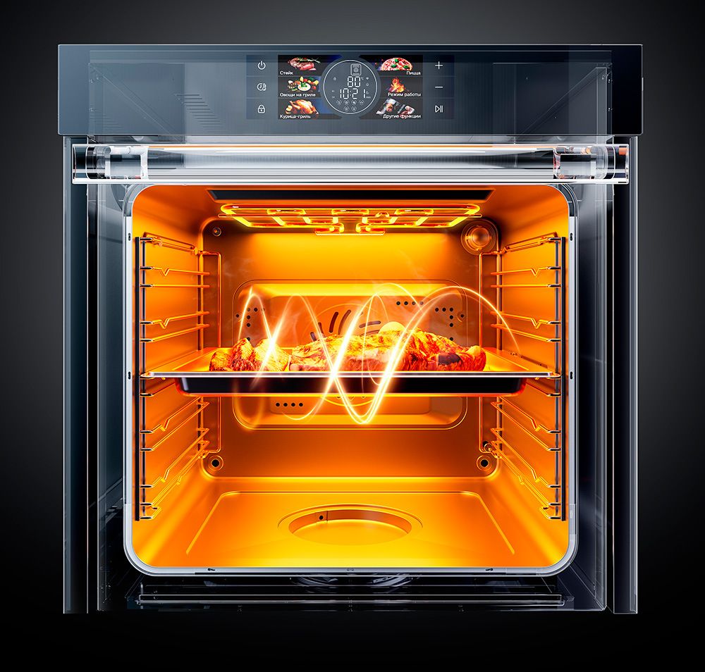 Совместная работа нагревательной трубки и высокоскоростного вентилятора создаёт мощный поток тепла, который равномерно окутывает продукт. Это позволяет достичь идеальной прожарки без необходимости переворачивать блюдо. Вы сможете забыть о рисках подгорания и постоянно радовать близких новыми кулинарными шедеврами.