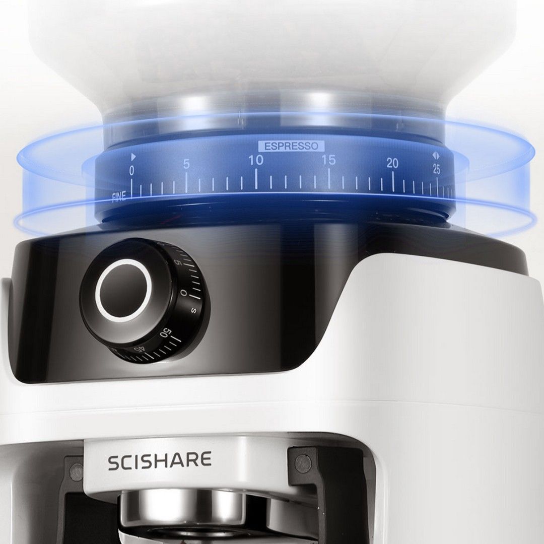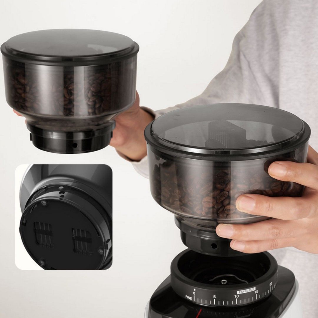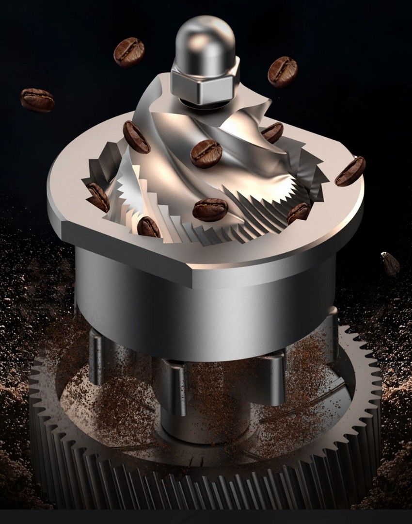 Система конусных ножей из нержавеющей стали SUS420 с высокой твёрдостью и острыми лезвиями, обработанными с помощью CNC, обеспечивает равномерный помол без пропусков зерен. Помол на скорости 460 об/мин, низкая скорость и низкое нагревание, что гарантирует равномерный помол без комков.
