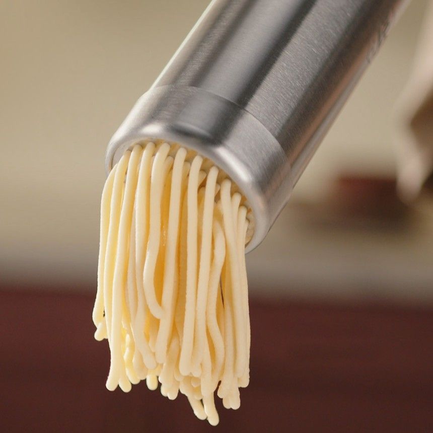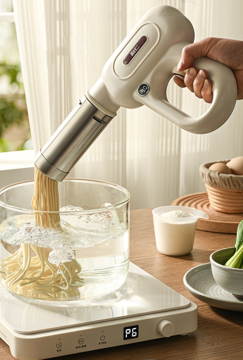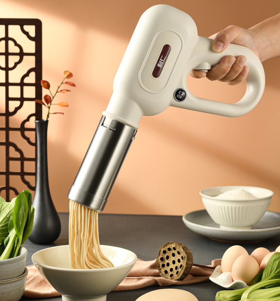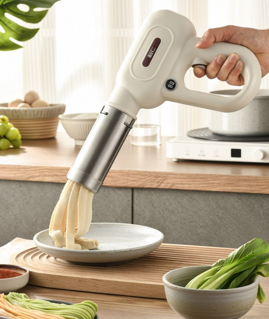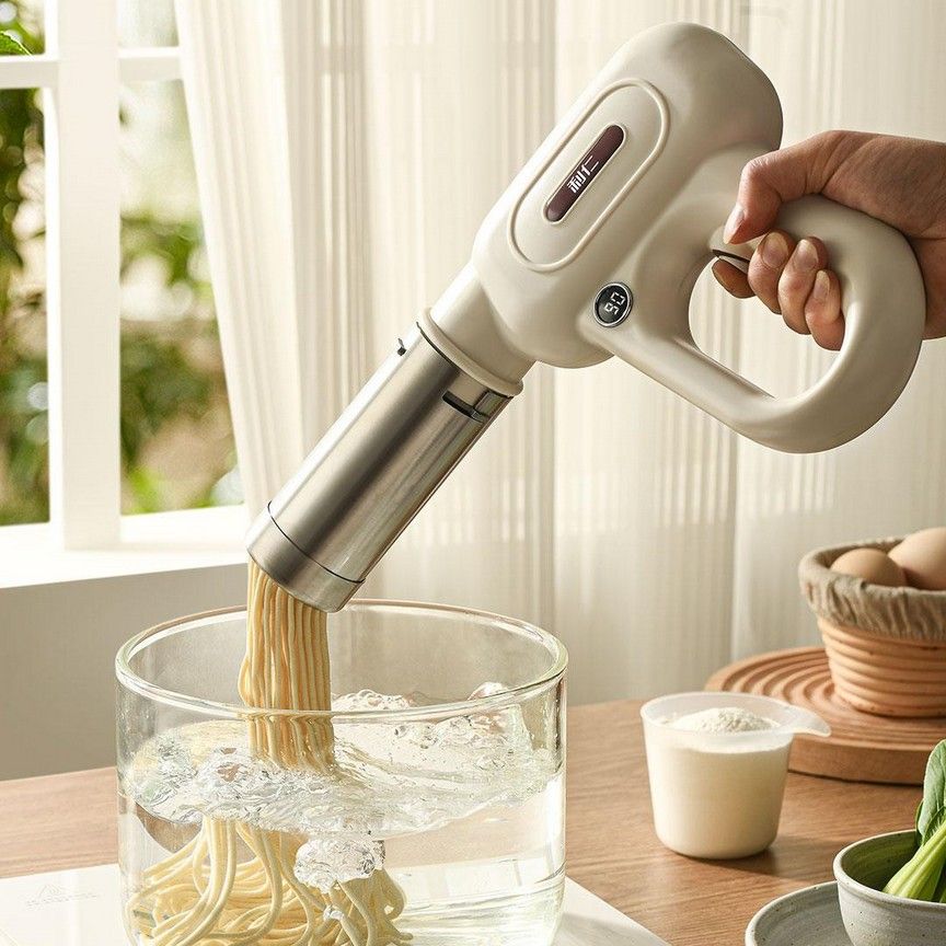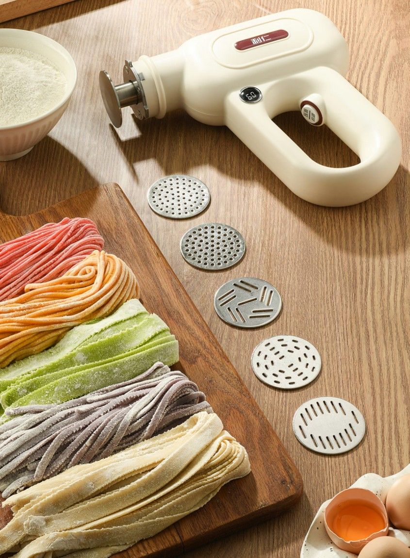 - Комплектация: Электрическая машина для приготовления пасты, кабель для зарядки, насадка для формования колбасок 2 шт., насадка для формования лапши 5 шт., мерный стакан, скребок, руководство пользователя