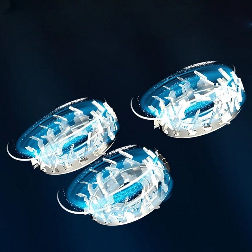 Три комплекта независимых плавающих лезвий, отсутствие мертвых углов во время бритья. Головки лезвий обеспечивают плавный и эластичный контакт, адаптируясь к различным контурам лица. Легко обрабатывает участки вокруг губ, щек, подбородка и бакенбардов.