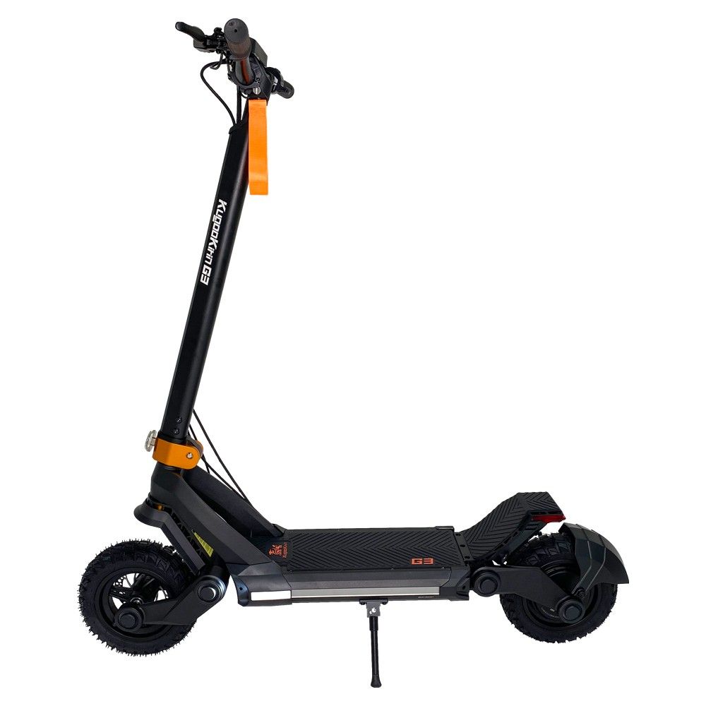 Электросамокат Kugoo G3 - является в своем роде внедорожником. Благодаря глубоким рессорам водитель без усилий проедет почти по любой пересеченной поверхности - парковые зоны, ландшафтные поверхности. Данная модель пользуется спросом у ценителей быстрой и спортивной езды.