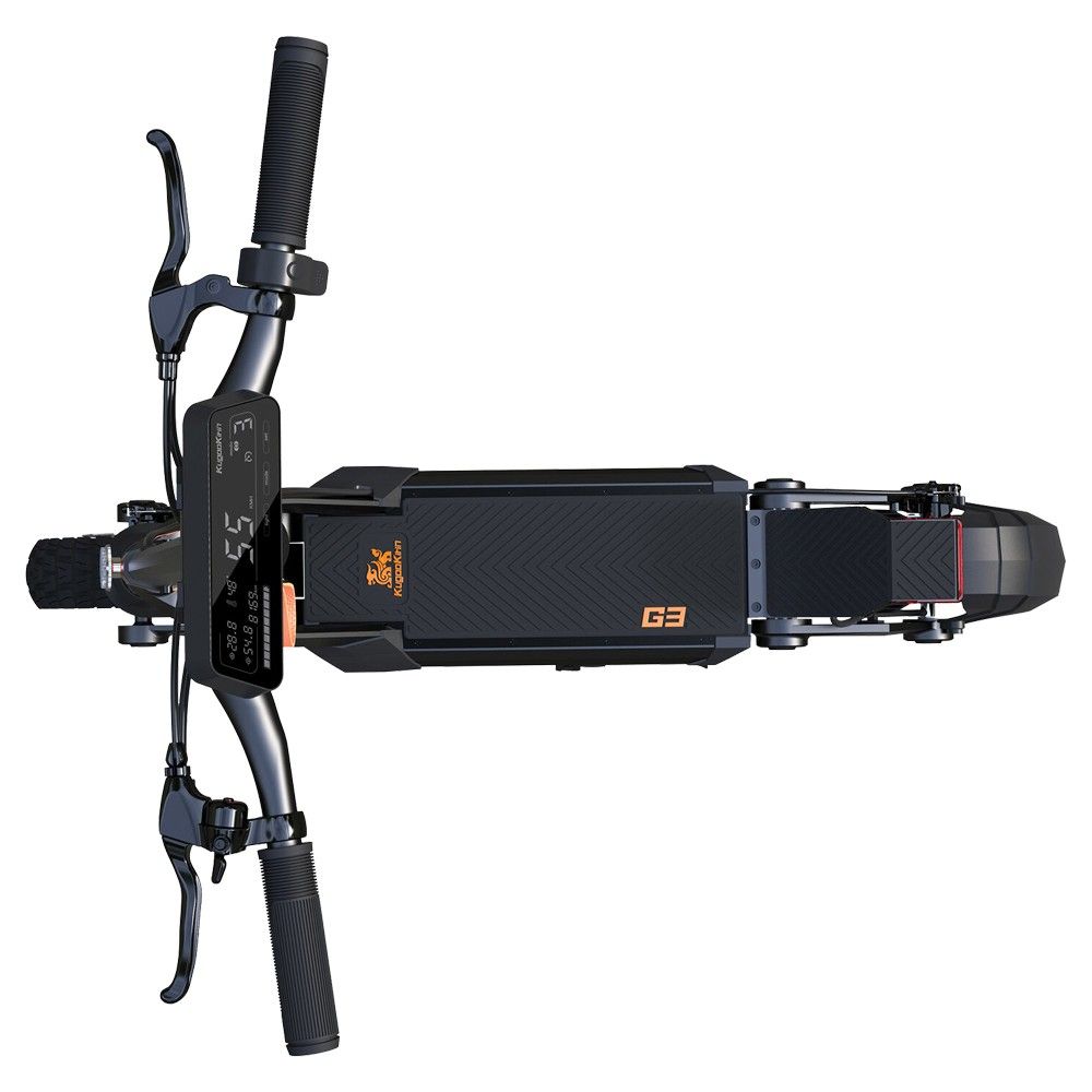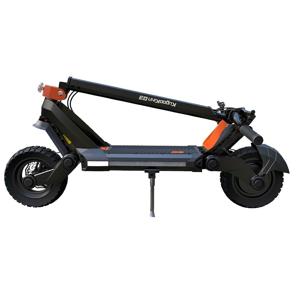 Kugoo G3 средняя и наиболее компактная модель в классе G. C мощностью мотора 1200 Вт и аккумулятора 18 Ач электросамокат набирает скорость до 50 км/час за 11 секунд и проезжает на одном заряде до 40 км. Данная модель подойдет опытным водителям и активным райдерам.
