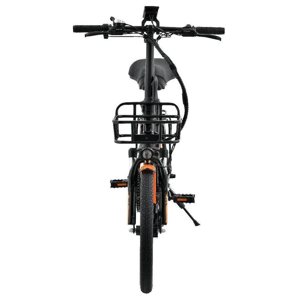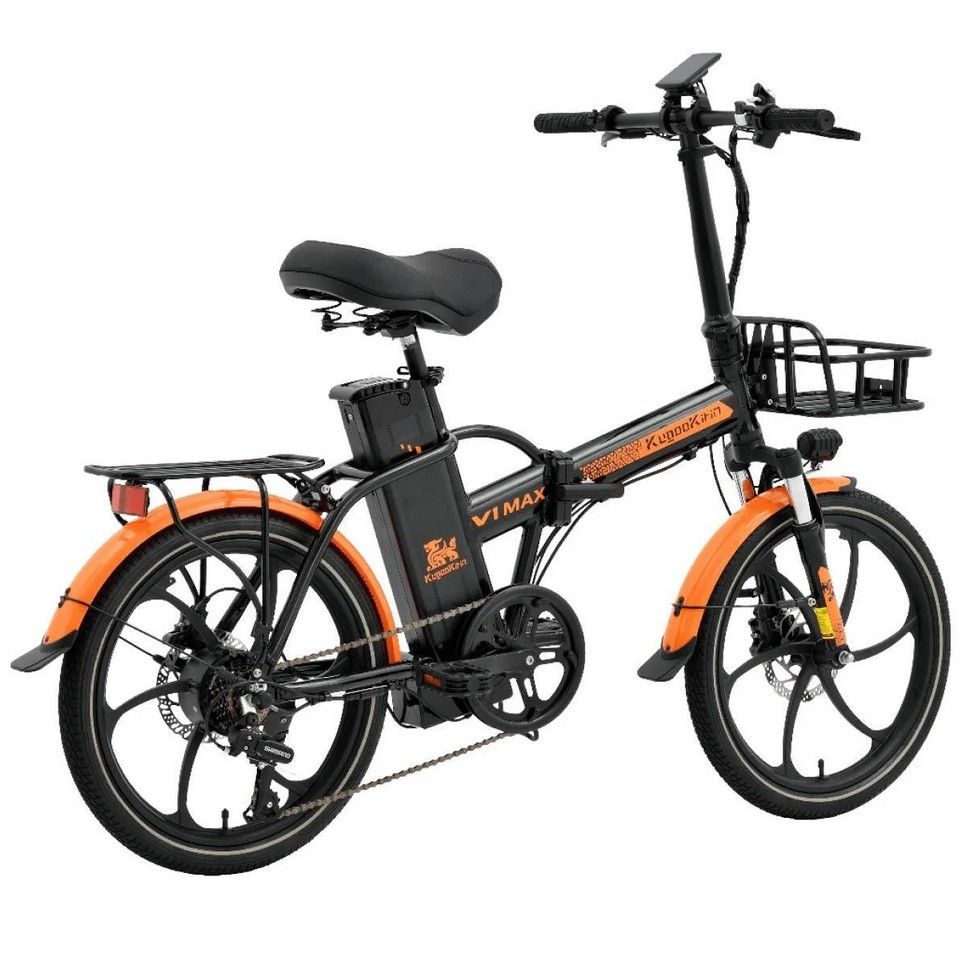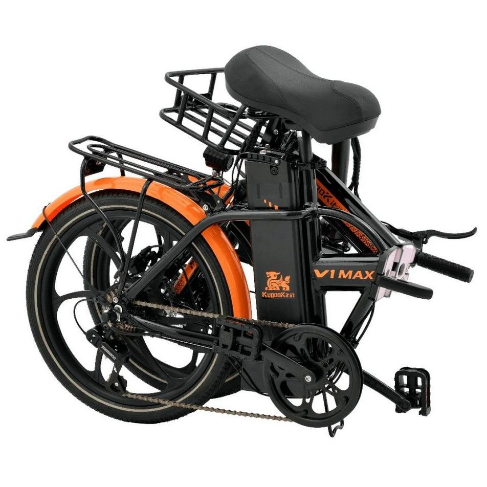 На рулевой стойке Kugoo V1 Max расположен вместительный бокс для транспортировки грузов весом до 50 кг. Электровелосипед подойдет для перевозки личных вещей, продуктов из магазина, хозяйственных товаров, а также применителен к профессиональной деятельности - курьерская служба. Модель предназначена для практичных людей. По центру размещен огромный яркий светодиодный фонарь. Устройство складывается и становится компактным и удобным для транспортировки.
