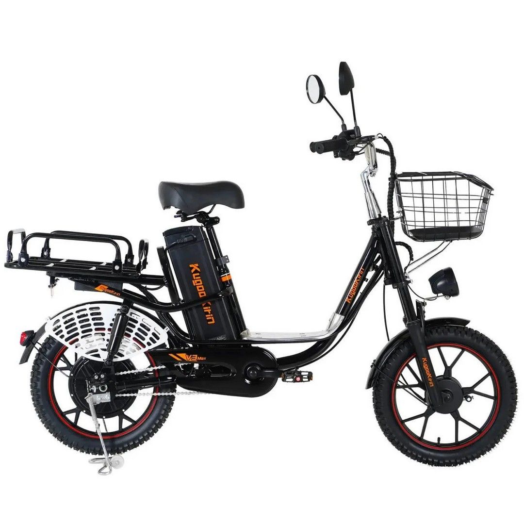 На рулевой стойке Kugoo V3 Max находится вместительная корзина для транспортировки грузов весом до 50 кг. Широкопрофильные шины дают возможность райдеру использовать электровелосипед на более агрессивной поверхности, достигается максимальное соприкосновение с поверхностью земли, как следствие удобство во время движения. По центру размещен яркий светодиодный фонарь.
