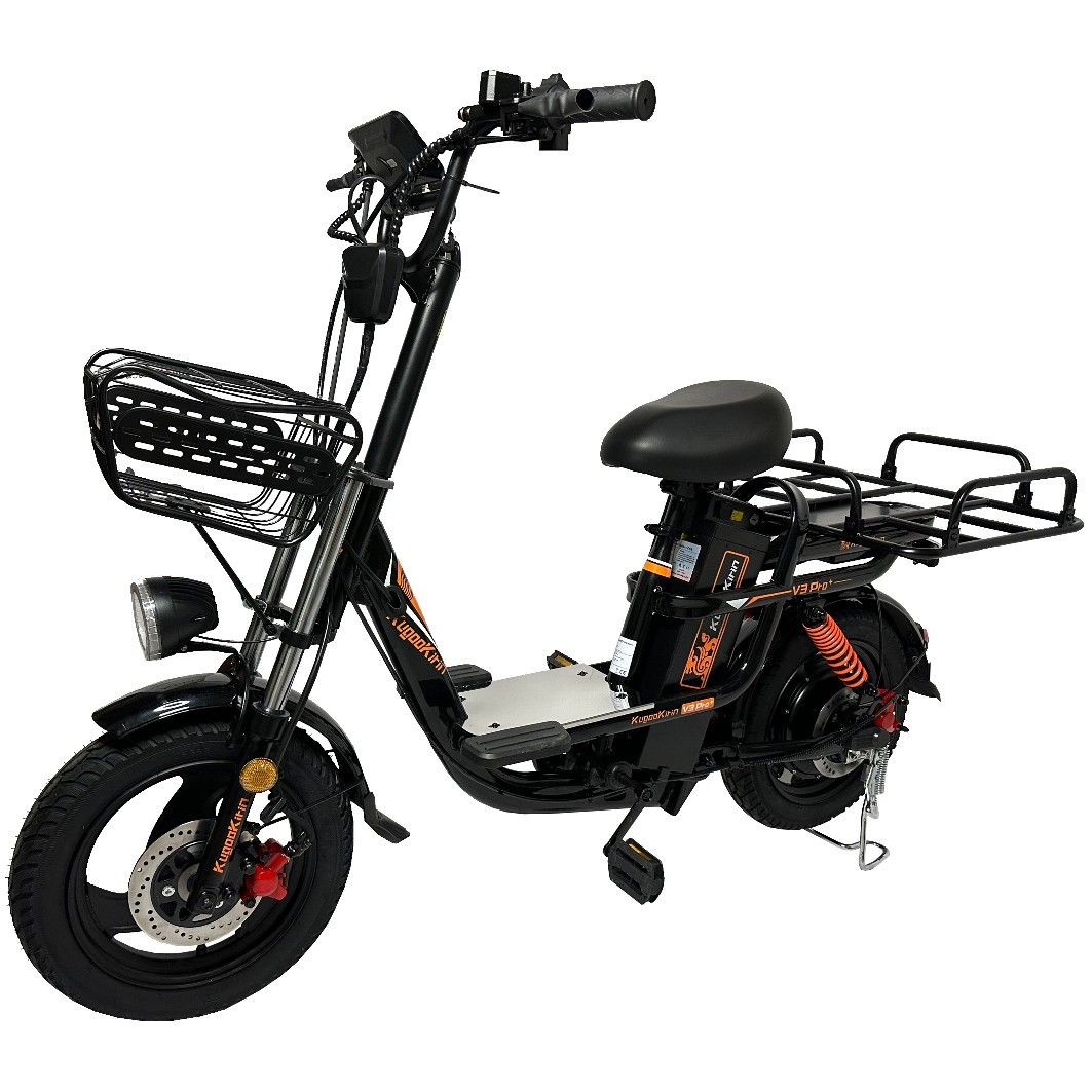 Электровелосипед, который может использоваться в качестве средства доставки. Он имеет максимальную скорость 55 км/ч и запас хода до 70 км. Грузоподъемность составляет 150 кг, что достаточно для большинства курьеров. Степень защиты IP54 означает, что велосипед устойчив к брызгам воды. Вес устройства составляет 40 кг, что позволяет сохранять устойчивость на дороге. Электровелосипед Kugoo V3 Pro Plus предназначен для городского и поселкового передвижения и предлагает своему пользователю уникальное решение - перевозка райдера вместе с пассажиром. На задней части устройства расположено дополнительное сиденье предназначенное для перевозки пасажира, либо груза.