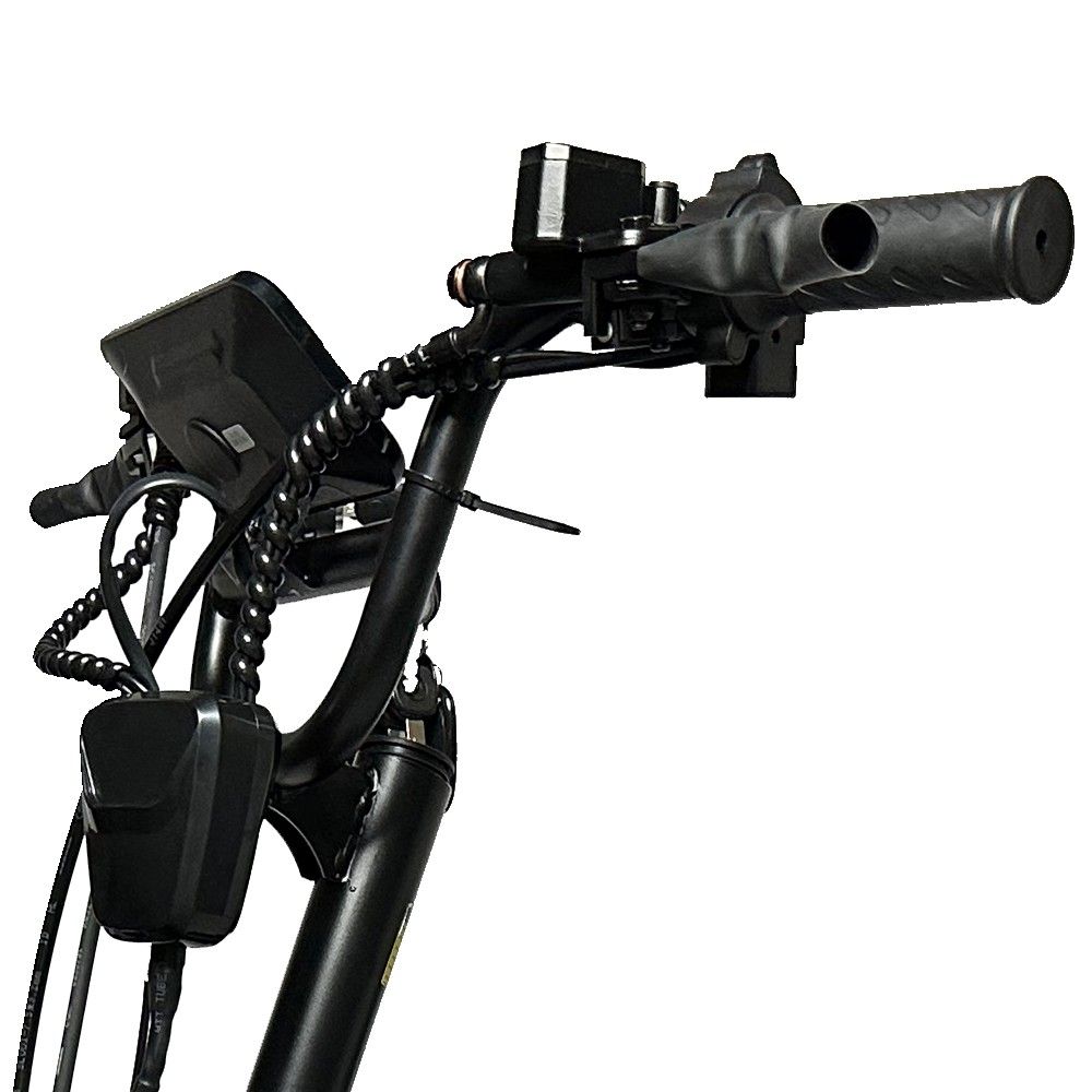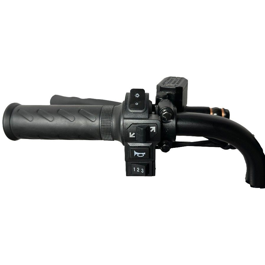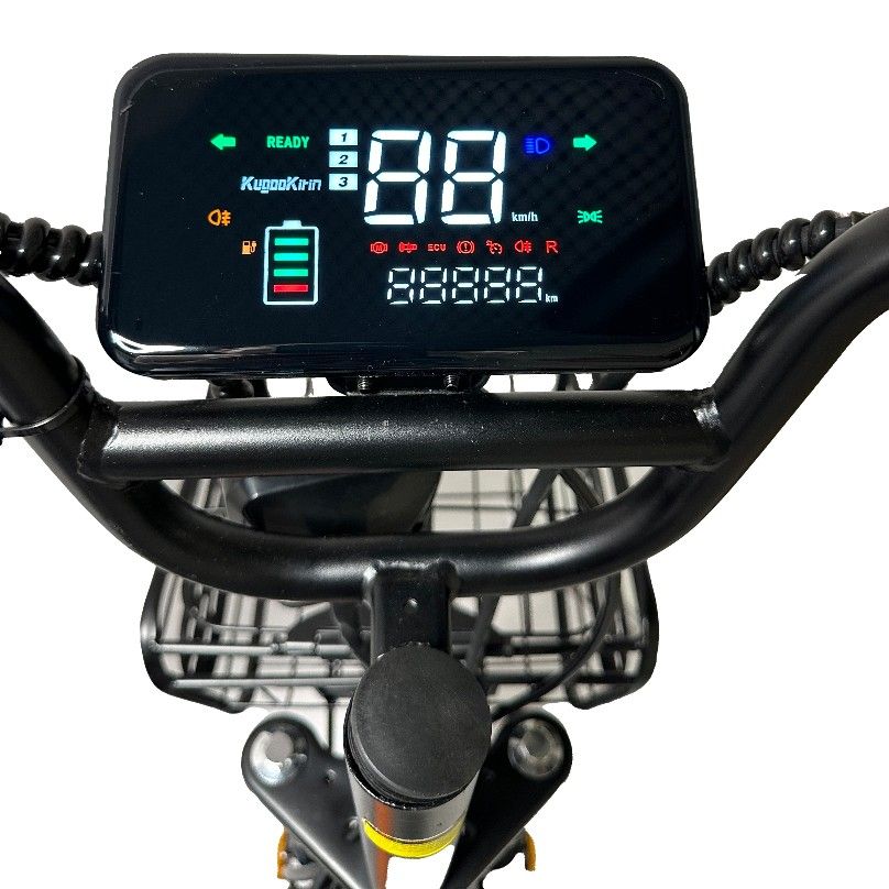 Электровелосипед Kugoo V3 Pro Plus удобен в управлении – все основные функции расположены на руле под большими пальцами: звуковой сигнал, включение освещения и поворотников, переключения скорости и привода. На большом цветном дисплее отображается скорость, пробег, заряд аккумулятора, также индикаторы включенного освещения и поворотников.