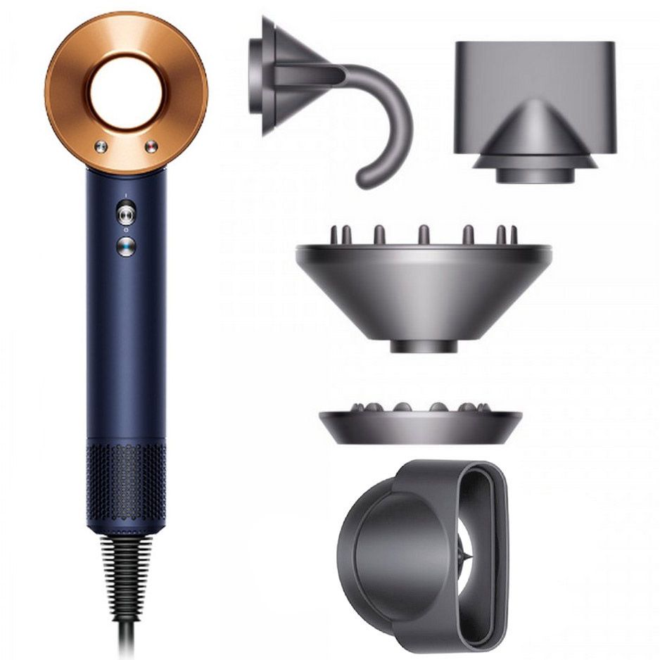 - Подробная комплектация: фен Dyson Supersonic, кейс, пять насадок для укладки: 1. Насадка для непослушных волос; 2. Насадка для бережного высушивания волос; 3. Концентратор для укладки; 4. Диффузор; 5. Насадка-концентратор