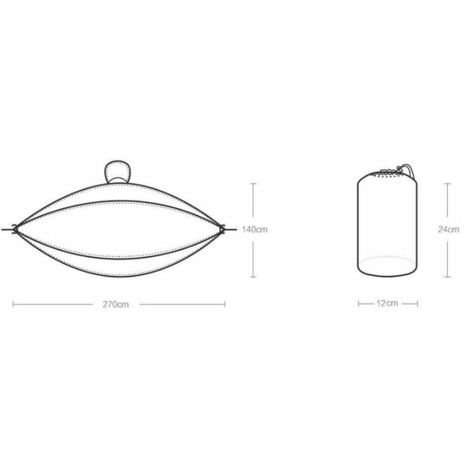 Вес всего 700 грамм и специальная ткань позволяет компактно сложить гамак. Возьмите его с собой куда угодно, он прекрасно поместится в сумке или рюкзаке.
