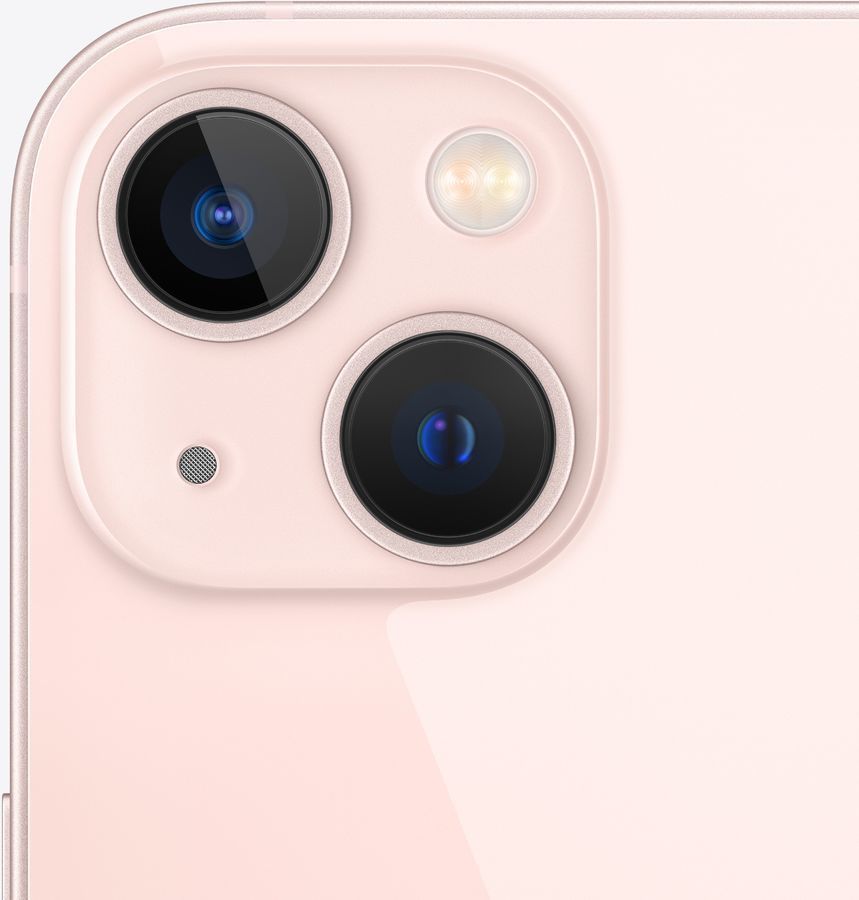 Смартфон оснащён новой системой камер, объективы которых расположены в блоке по диагонали. Камеры имеют более крупный сенсор, захватывающий больше света (что приводит к снижению уровня цифрового шума), поддерживают улучшенную ночную съемку и оптическую стабилизацию. Камера стала лучше по сравнению с iPhone 12, основной модуль на 12 Мп улавливает больше света, а дополнительный широкоугольный модуль на те же 12 Мп обзавёлся автофокусом и лучше приспособлен к съёмке в условиях плохого освещения. Широкоугольная: диафрагма ƒ/1.6. Сверхширокоугольная: диафрагма ƒ/2.4 и угол обзора 120°.