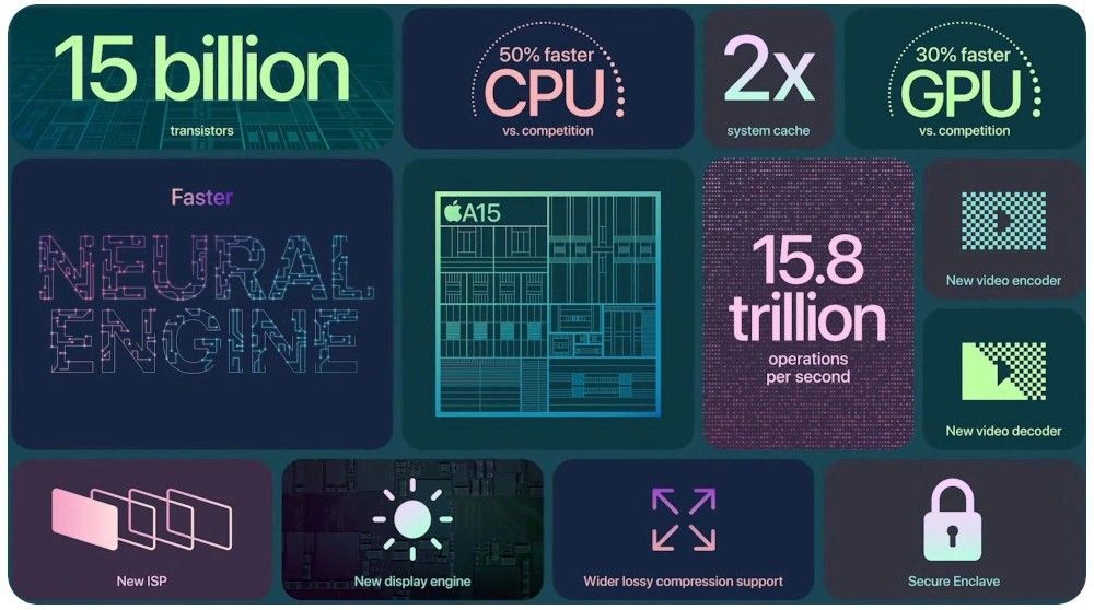 - Процессор: Apple A15 Bionic, 3,2 Ггц, 5 нм