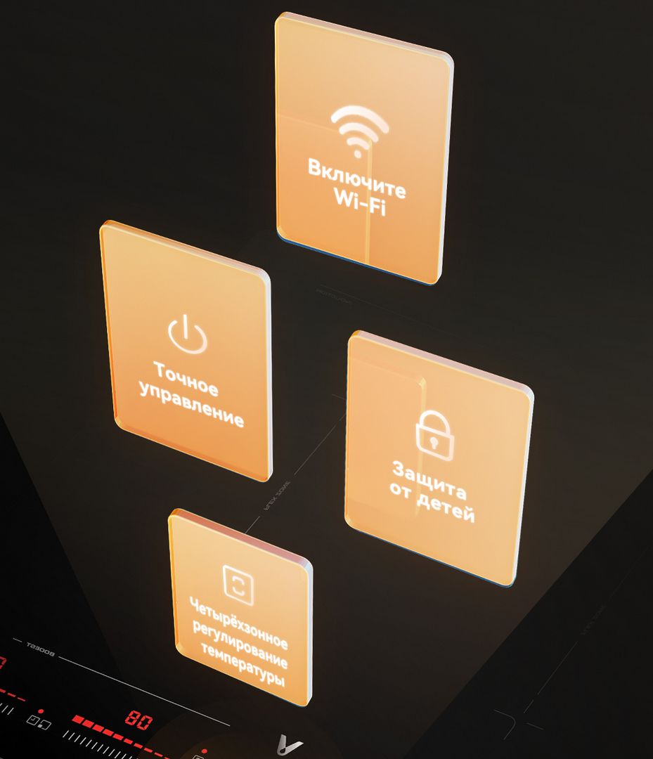 Выбирайте практичные функции: точный запуск и остановку, включение Wi-Fi, защиту от детей и четырёхзонное регулирование температуры. Всё это позволит адаптировать приготовление пищи под ваши различные потребности.