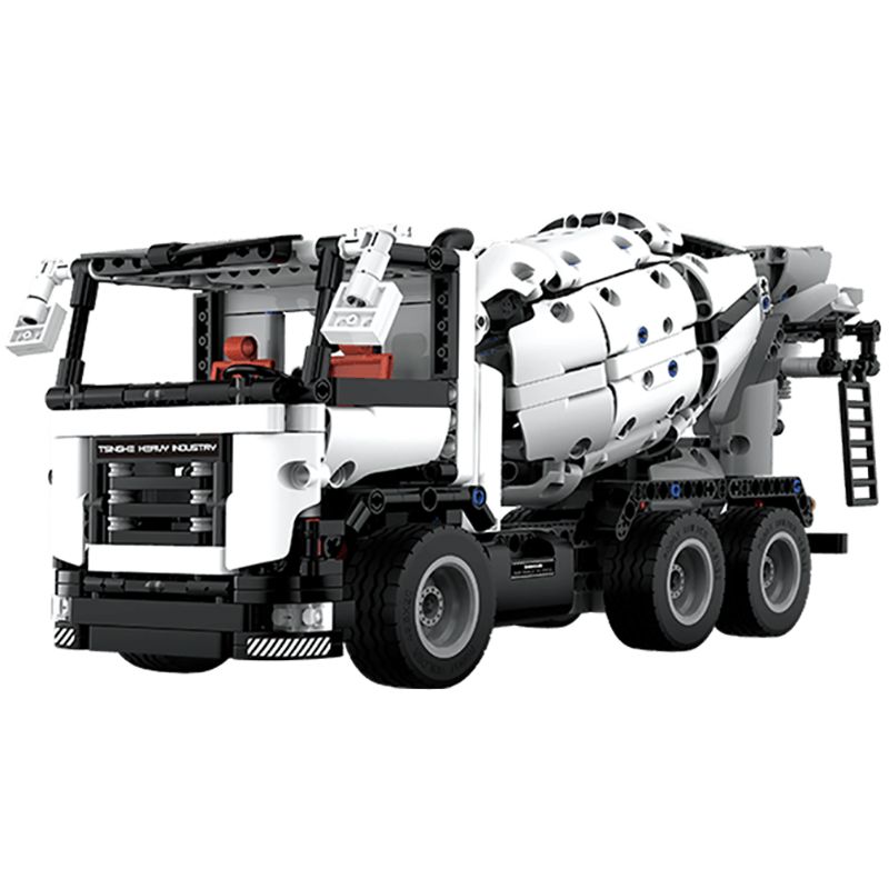Конструктор состоит из более чем 900 различных деталей. В собранном виде он представляет собой точную копию бетономешалки. Детали выполнены из АБС-пластика, поликарбоната. Это экологически безопасные материалы, которые даже при регулярном контакте не причинят вреда здоровью.