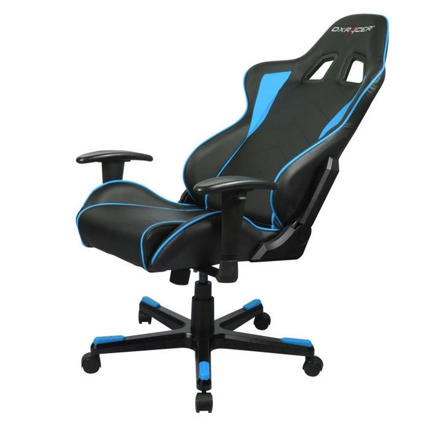 DXRacer OH/FE08/NB - эргономичное компьютерное кресло в спортивном дизайне. Обивка выполнена из эко-кожи в черном цвете с синими вставками. Регулируемые по высоте подлокотники и откидывающаяся до 170 градусов спинка позволяют подобрать удобную позу для работы.