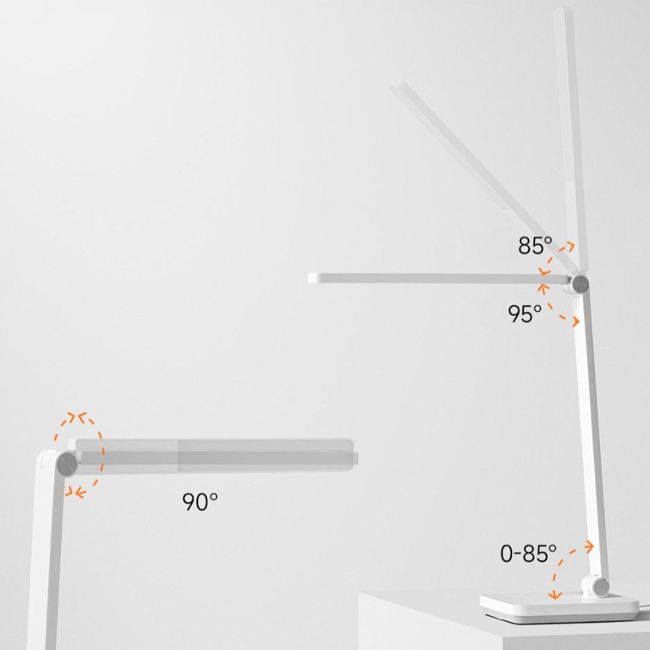 Трехосевое соединение головки лампы, стойки и основания позволяет реализовать гибкое освещение. Стойку можно отрегулировать на 85° для ежедневного использования, а остальную часть можно сложить, что делает ее более удобной для хранения в зависимости от необходимости и не занимает места на рабочем столе.