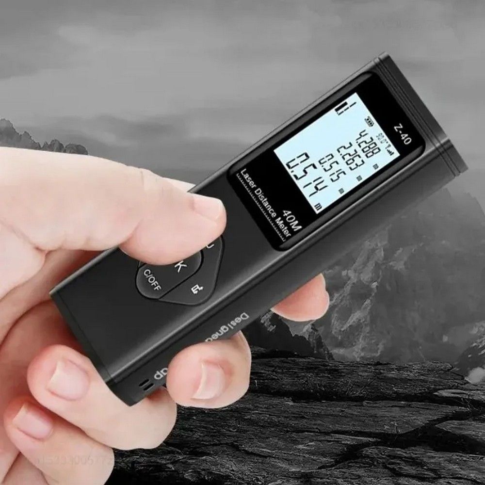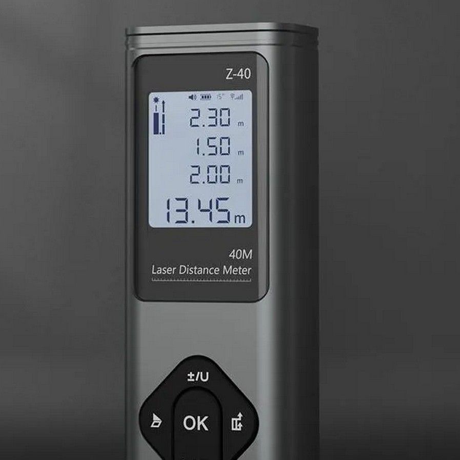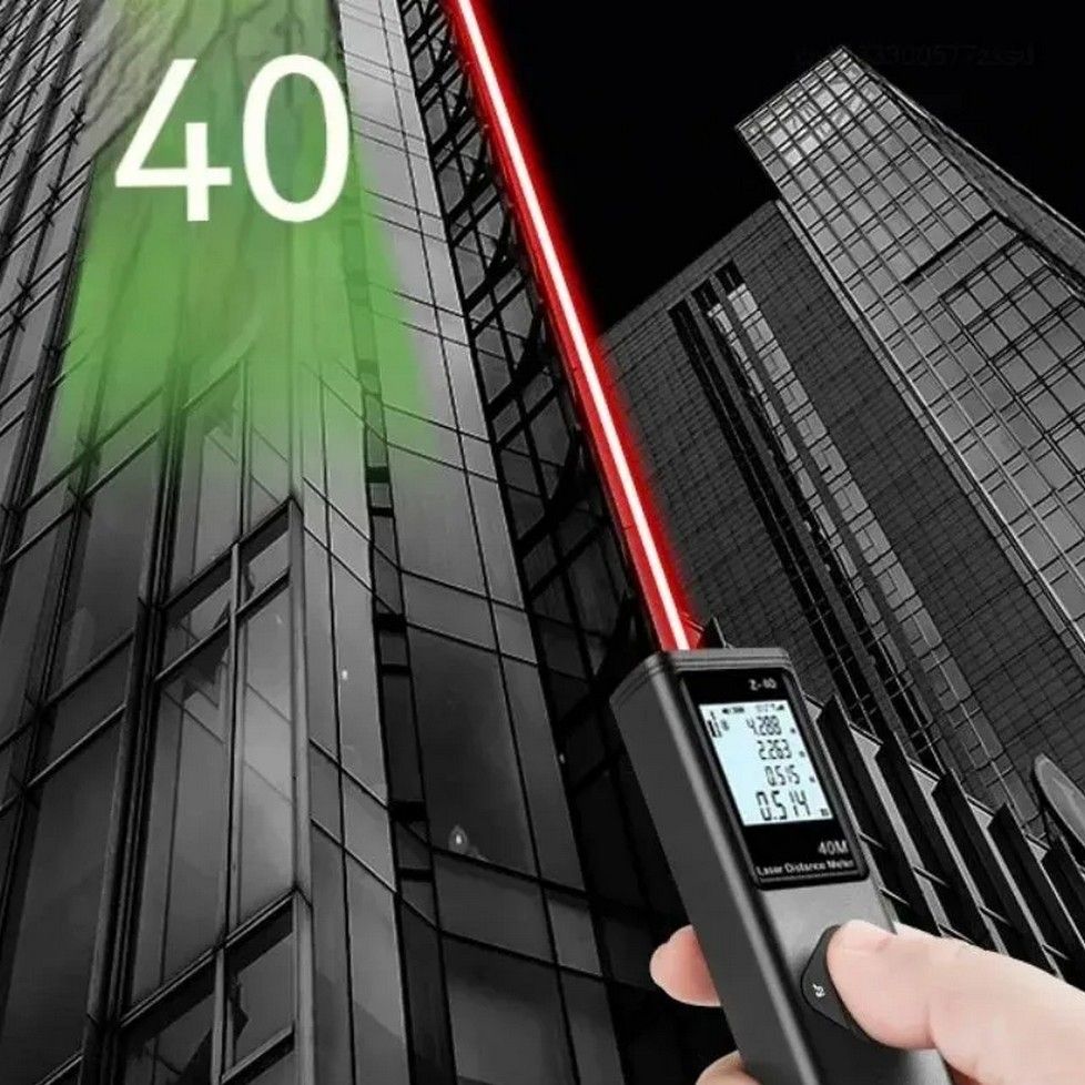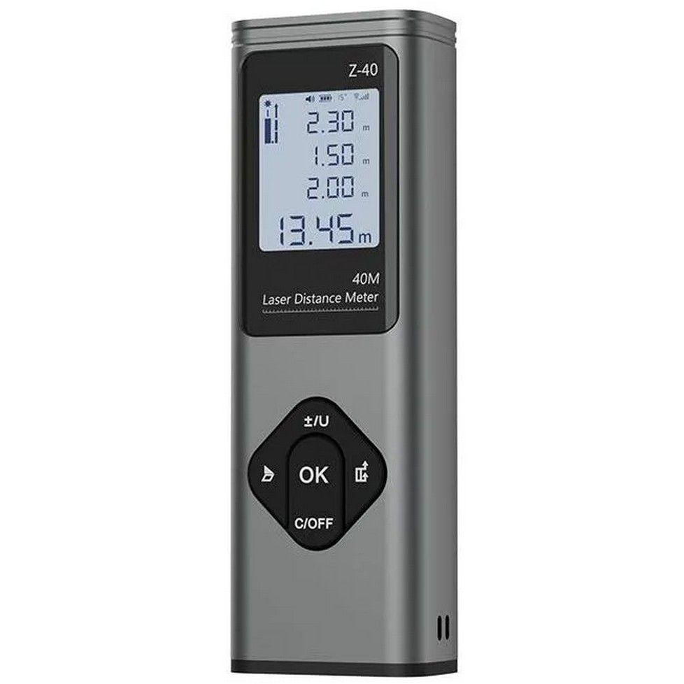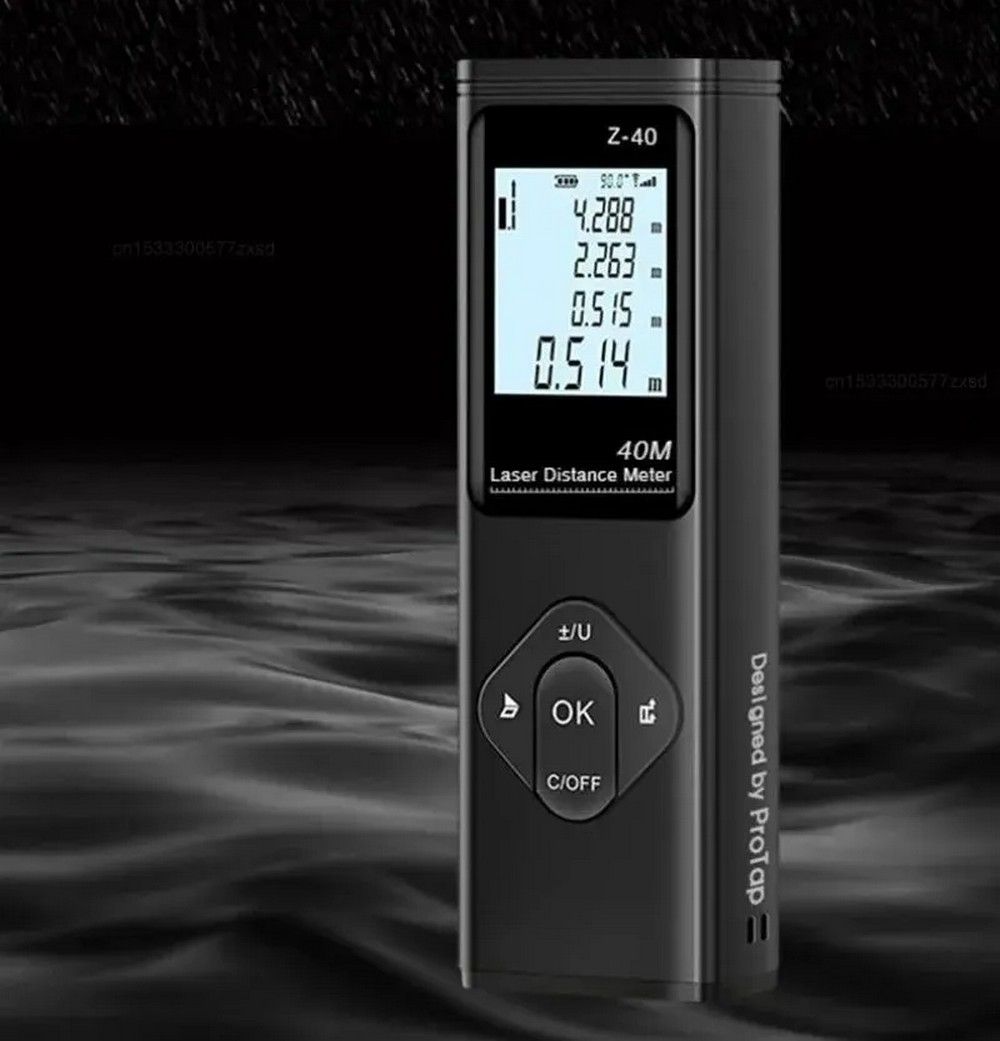 Дальномер лазерный ProTap Laser Range Finder Z40. Максимальное измеряемое расстояние достигает 40 метров (в закрытых пространствах). Погрешность не превышает 2 мм.