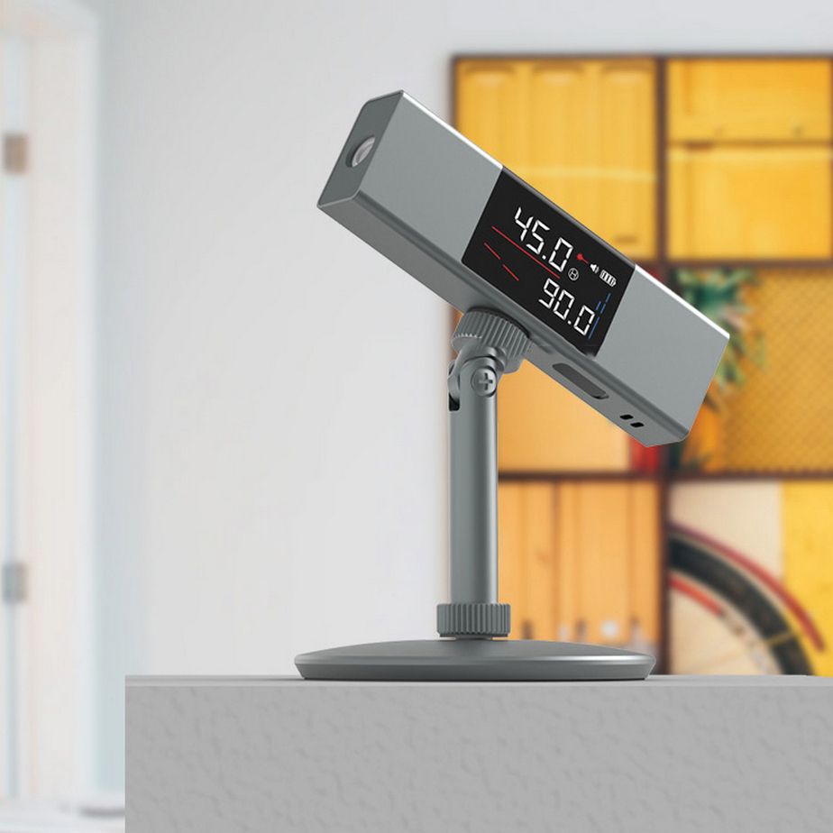 Уровень Duka LI1 Laser Casting Angle Meter оснащен интеллектуальной защитой от наклона. Если наклон до 4 градусов, он автоматически выравнивается уровнем. Когда угол наклона более 4 градусов, загорается красный предупреждающий индикатор.