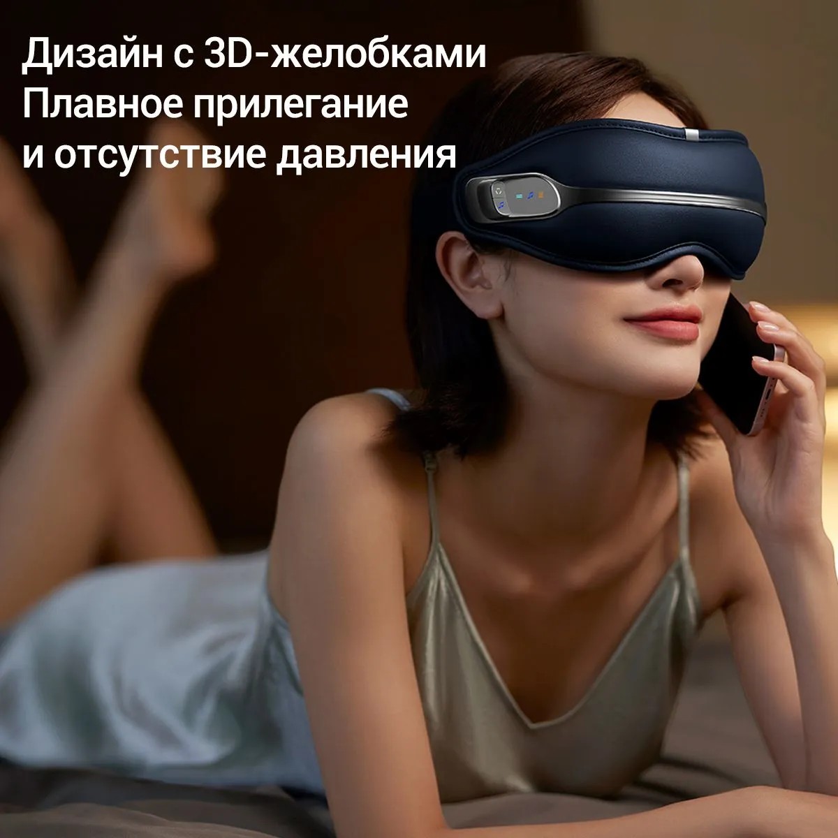 Deerma DEM-M301E разработан с анатомическим учетом формы лица: 3D-канавки и встроенный шаблон обеспечивают идеальную посадку без давления на глазные яблоки. Мягкий воздухопроницаемый материал приятен на ощупь, не вызывает раздражения и позволяет коже «дышать». Вес устройства составляет всего 220 грамм — он практически не ощущается, что делает возможным использование даже во время отдыха или сна. Износостойкая поверхность легко очищается и устойчива к загрязнениям.