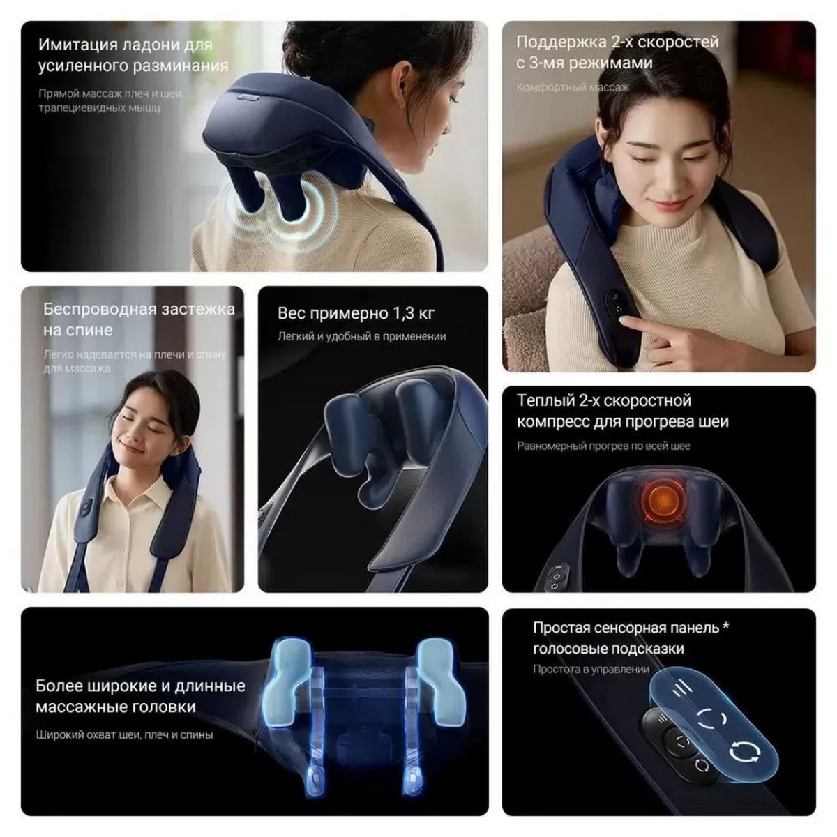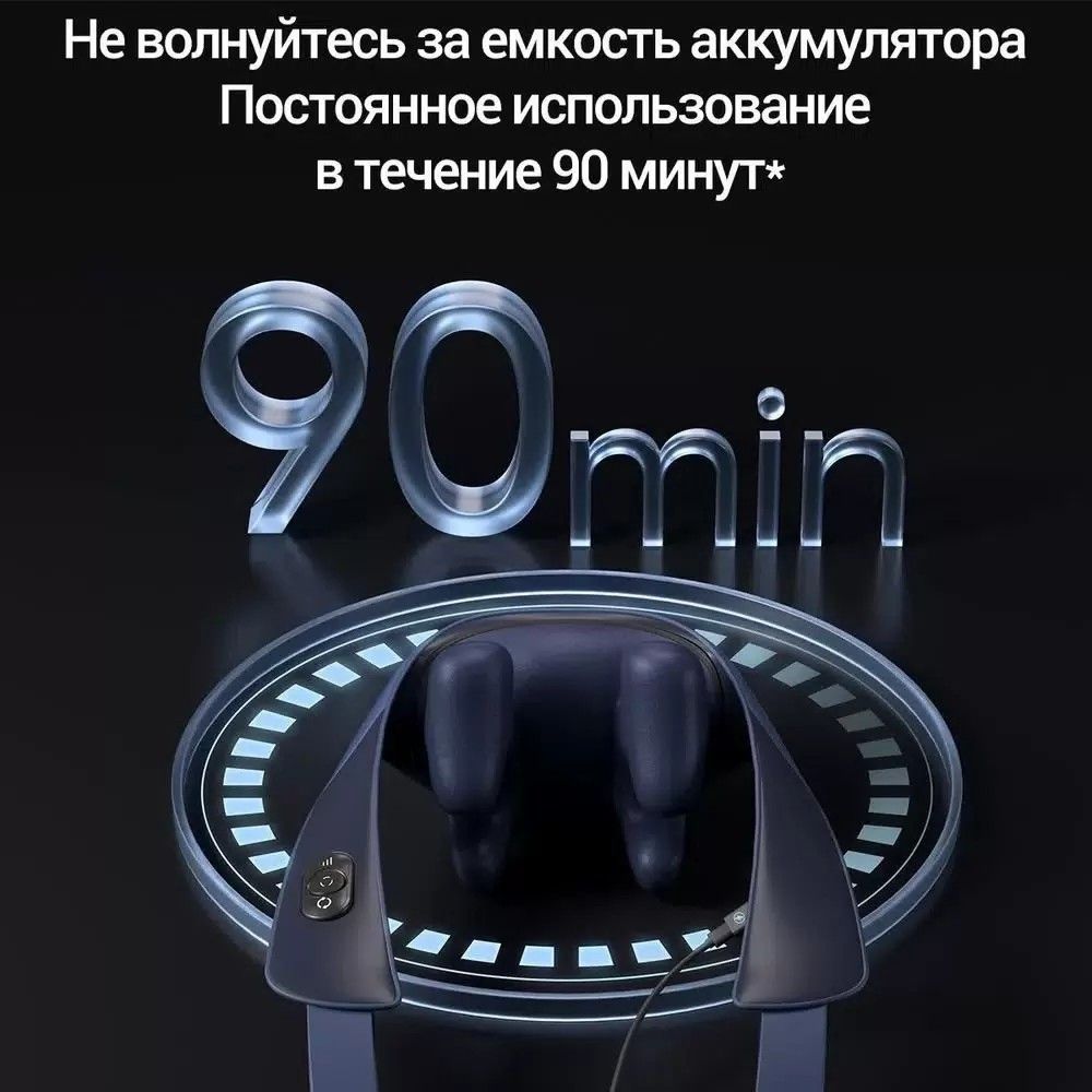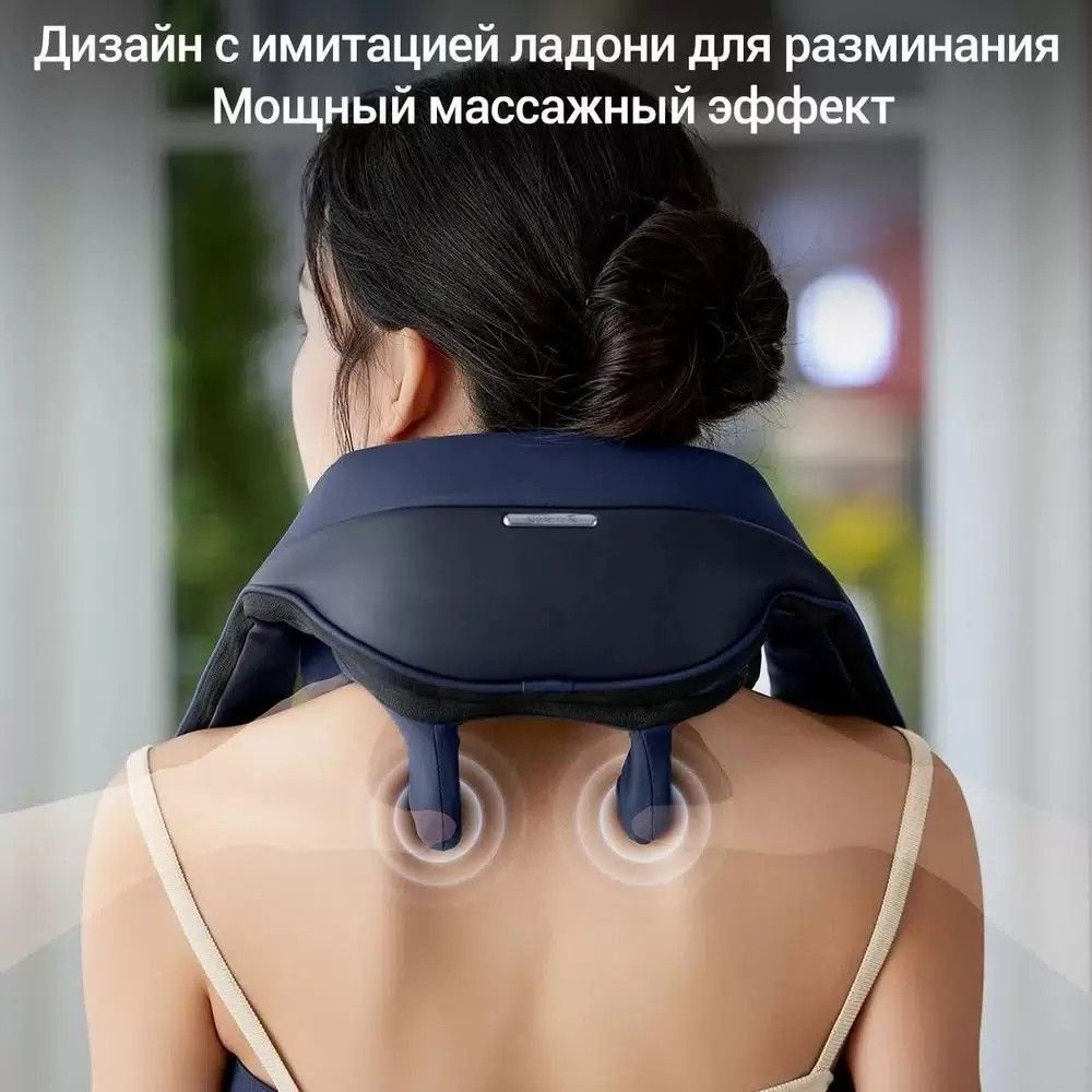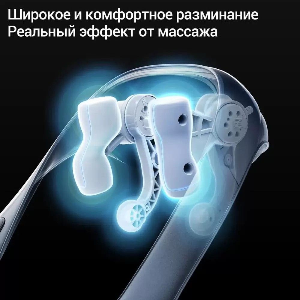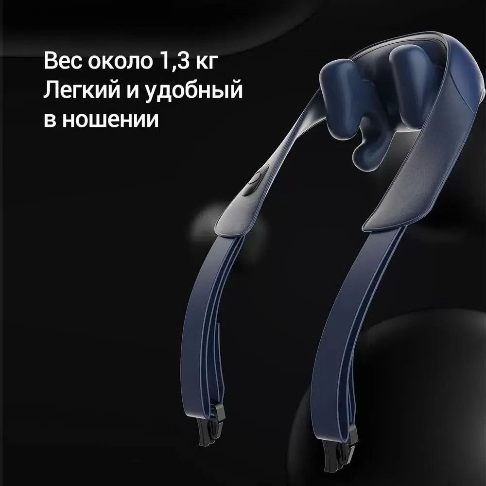 Корпус весит около 1,3 кг, что делает его легким и удобным в носке. Массажер слегка накрывает плечи и шею, не стесняя движений.